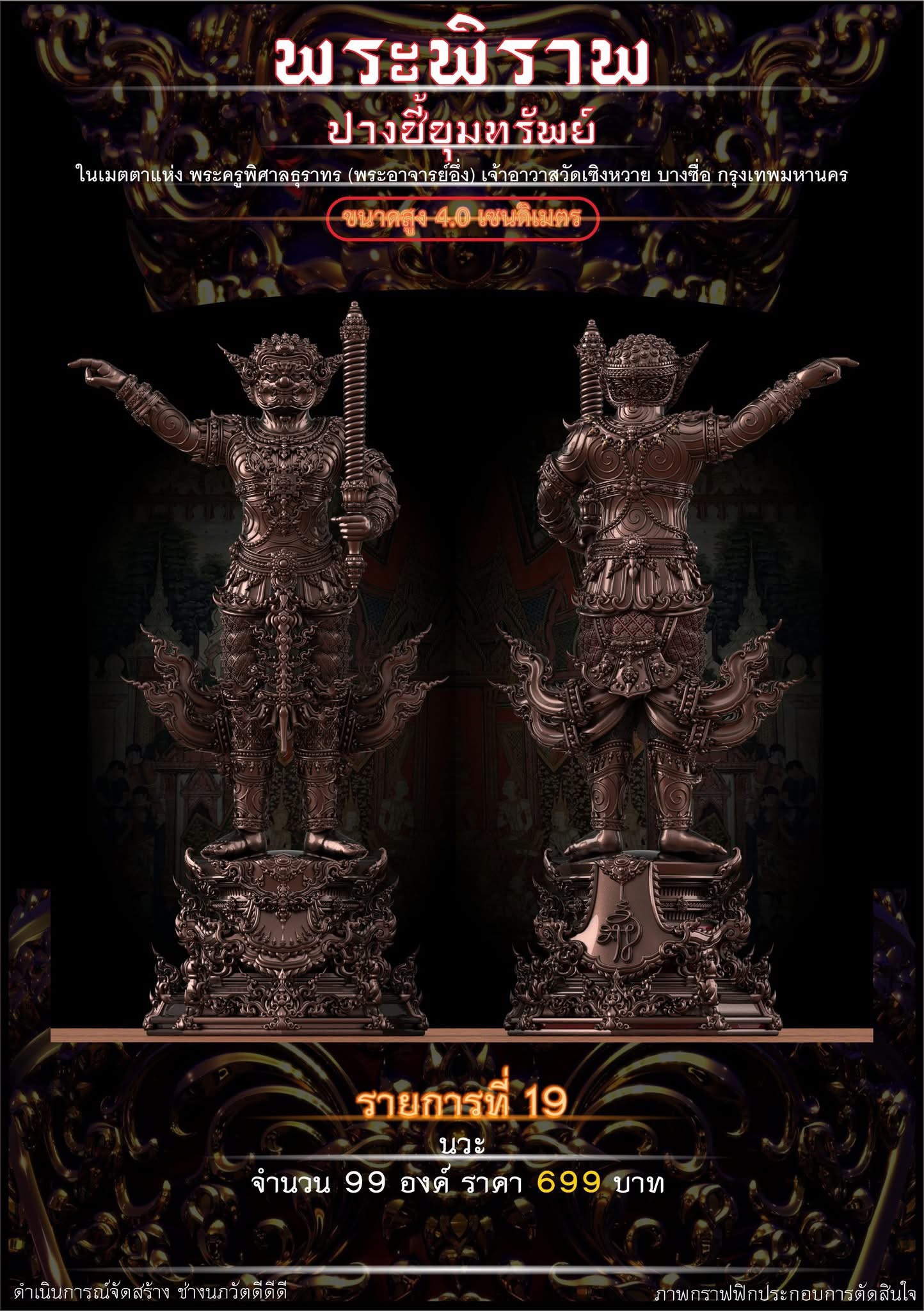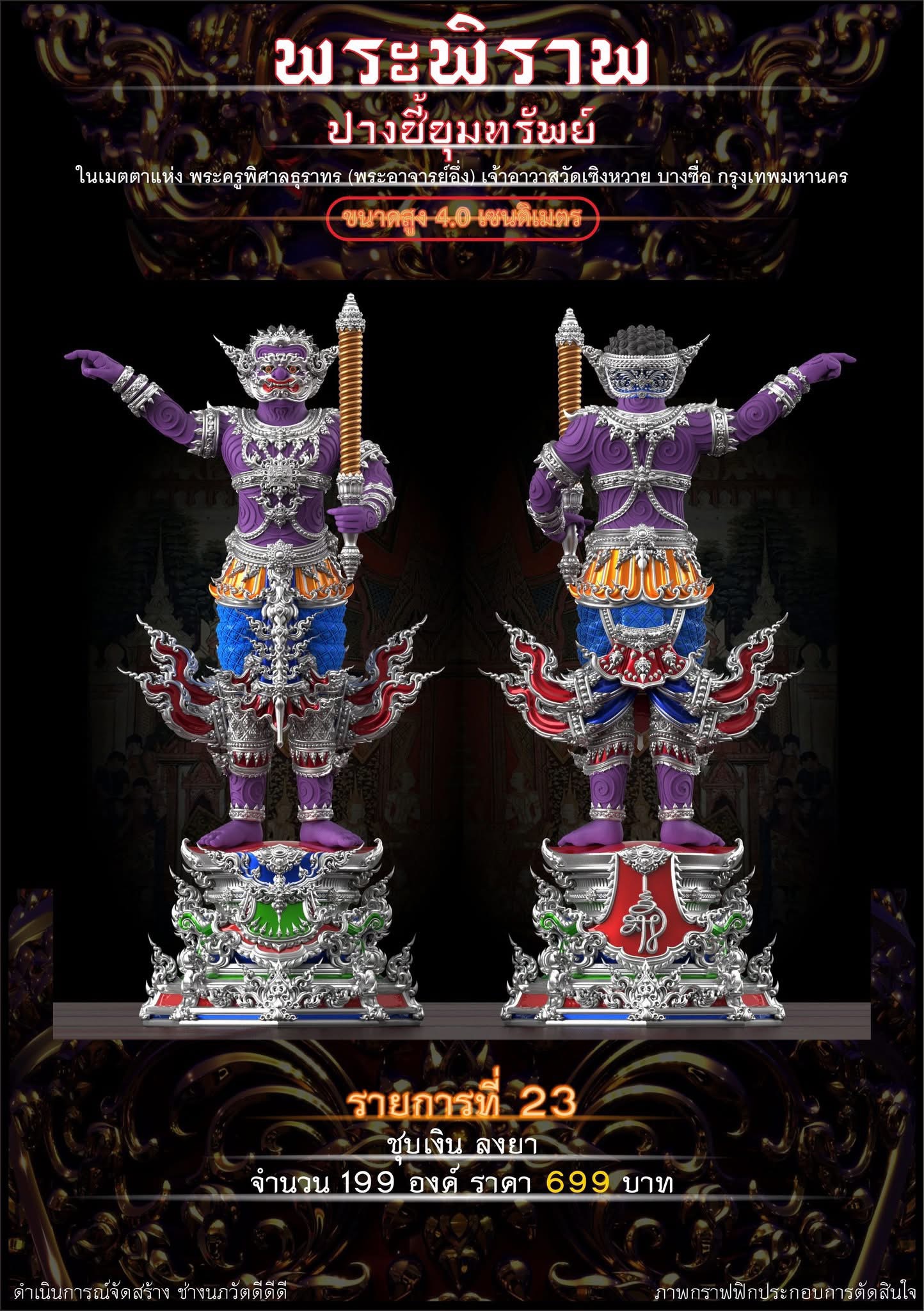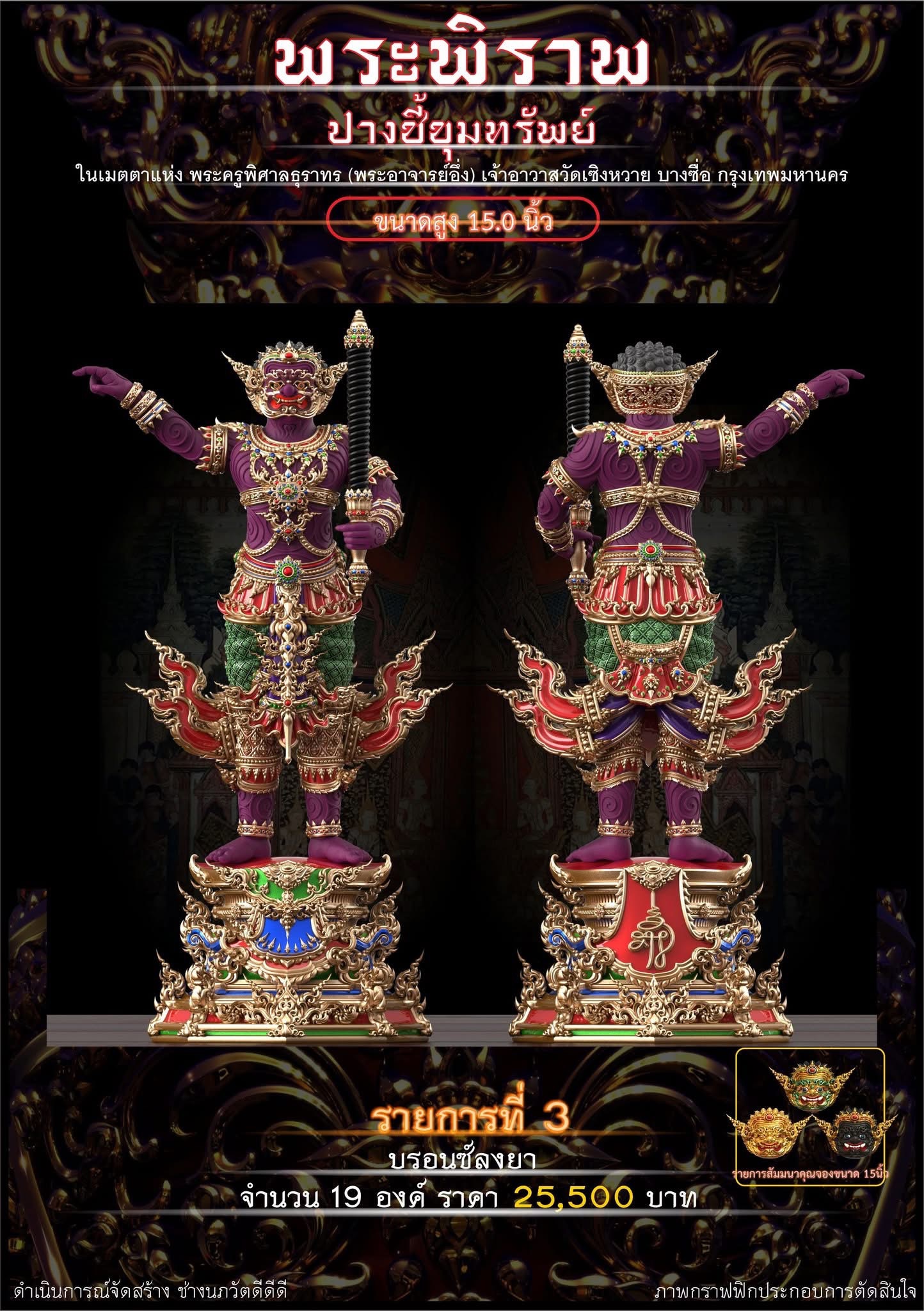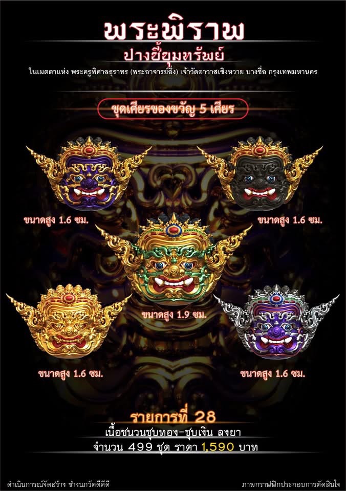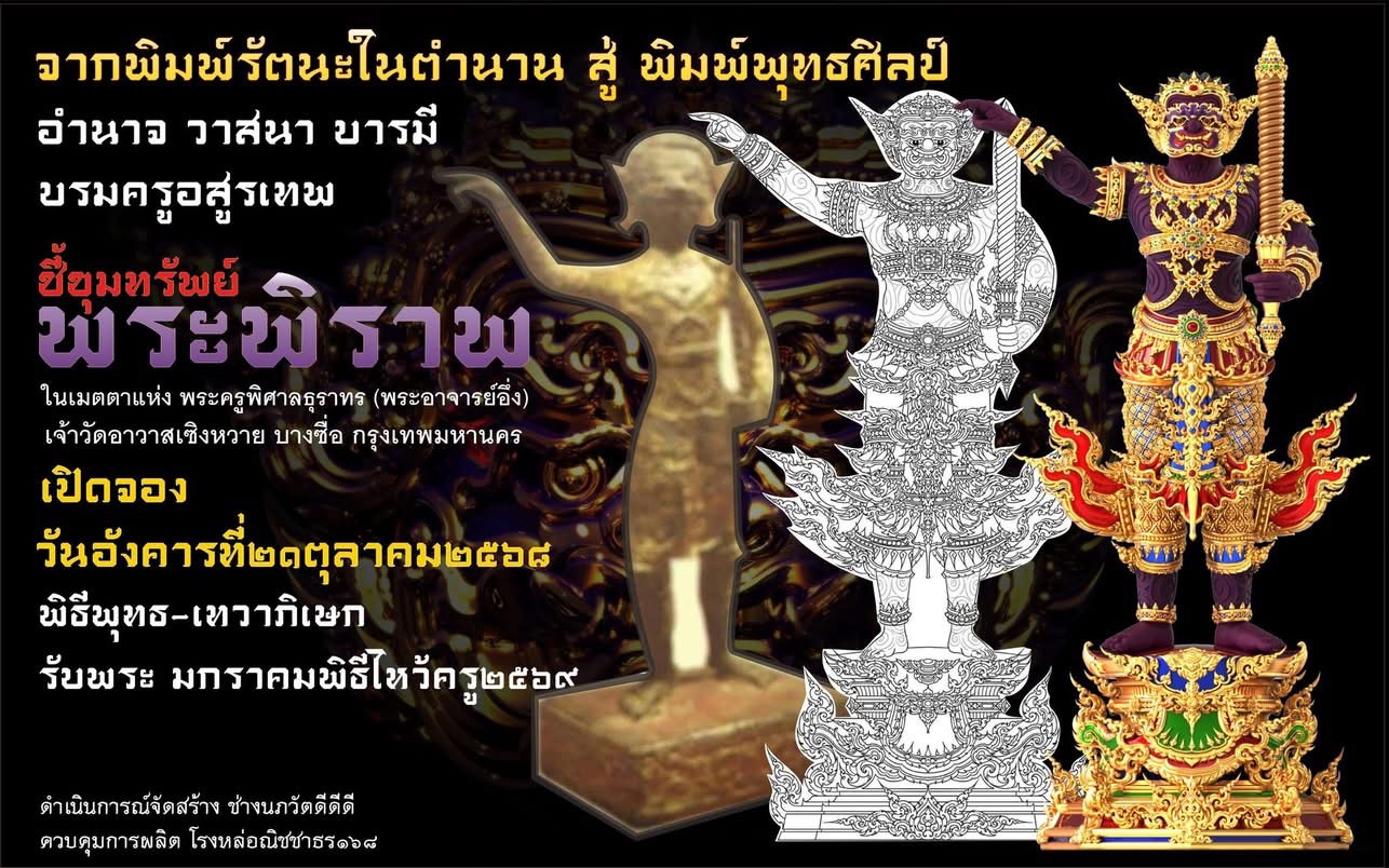 เปิดจอง พระพิราพ ปางชี้ขุมทรัพย์ ผลงานพุทธศิลป์ระดับพรีเมียม องค์ครูผู้เปิดทางแห่งทรัพย์สินและความรุ่งเรือง พลังแห่งพระพิราพ ปางชี้ขุมทรัพย์ ปัดเป่ามาร ปกปักผู้บูชาให้เจริญก้าวหน้าในทุกด้าน แรงบันดาลใจจาก ต้นแบบงานรัตนะในสมัยรัชกาลที่ 6 ถ่ายทอดสู่พุทธศิลป์ร่วมสมัย ผสานความเข้มขลังทางจิตวิญญาณกับความงดงามประณีตแห่งงานศิลป์ งดงาม น่าสะสม สมคุณค่าแห่งครู มีคุณค่าแก่การครอบครอง รายละเอียดผลงาน พระบูชา: ความสูง 15 นิ้ว / 9 นิ้ว / 5 นิ้ว พระห้อยคอ: ความสูง 4 ซม. และ งานหน้ากาก ออกแบบลายเส้น : เจนณรงค์ ทิพยเทวะรังสรรค์ ประติมากร 3D : ช่างนภวัตดีดีดี จัดสร้างโดย : ช่างนภวัตดีดีดี เปิดสั่งจอง: วันที่ 21 ตุลาคม 2568 กำหนดรับผลงาน: เดือนมกราคม 2569 พระพิราพ ปางชี้ขุมทรัพย์ — ศิลป์แห่งพลังครู ผู้ชี้ทางสู่ความมั่งมีถาวร