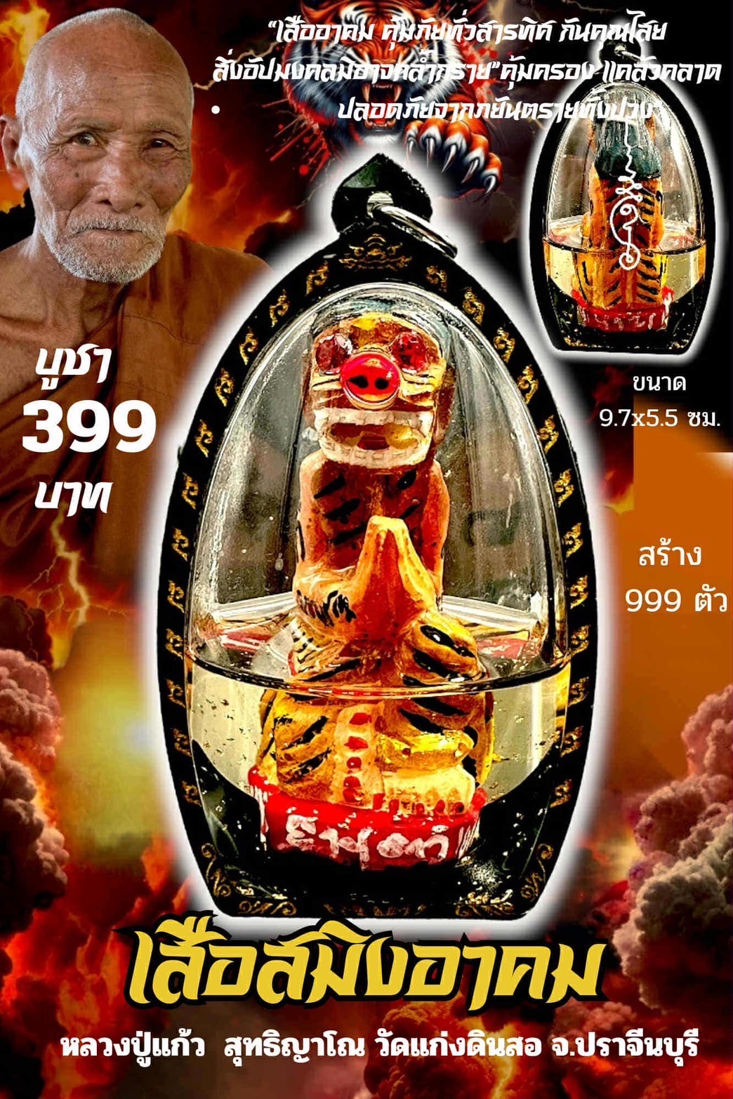 หลวงปู่แก้ว สุทธิญาโณ วัดแก่งดินสอ จังหวัดปราจีนบุรี เสือสมิงอาคม พร้อมเลี่ยม ราคาจอง 399 บาท สร้าง 999 ตัว มีเลขโค้ดกำกับทุกตัว เนื้อเรซิ่น รับพระเดือนธค. วัตถุประสงค์:พัฒนาวัดแก่งดินสอ จ.ปราจีนบุรี