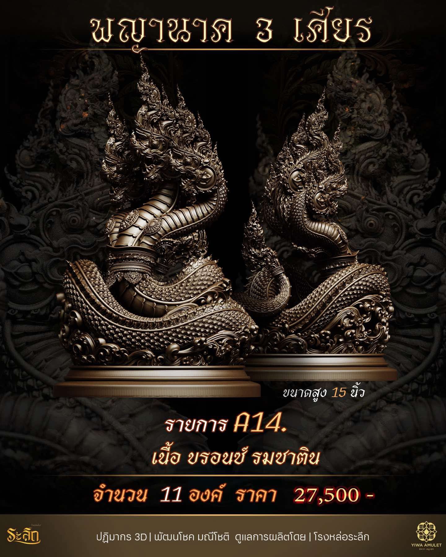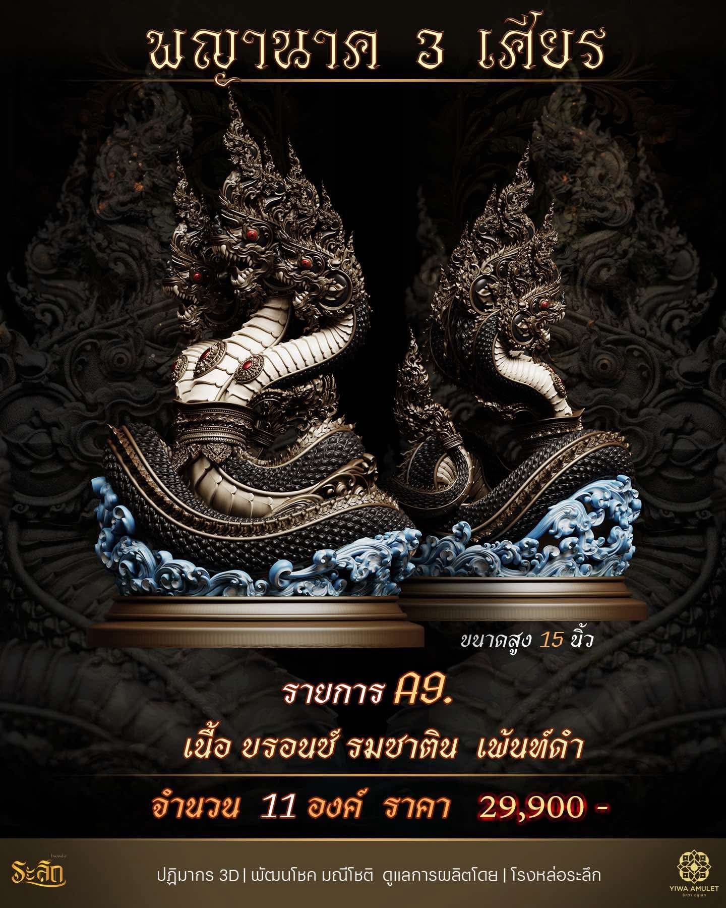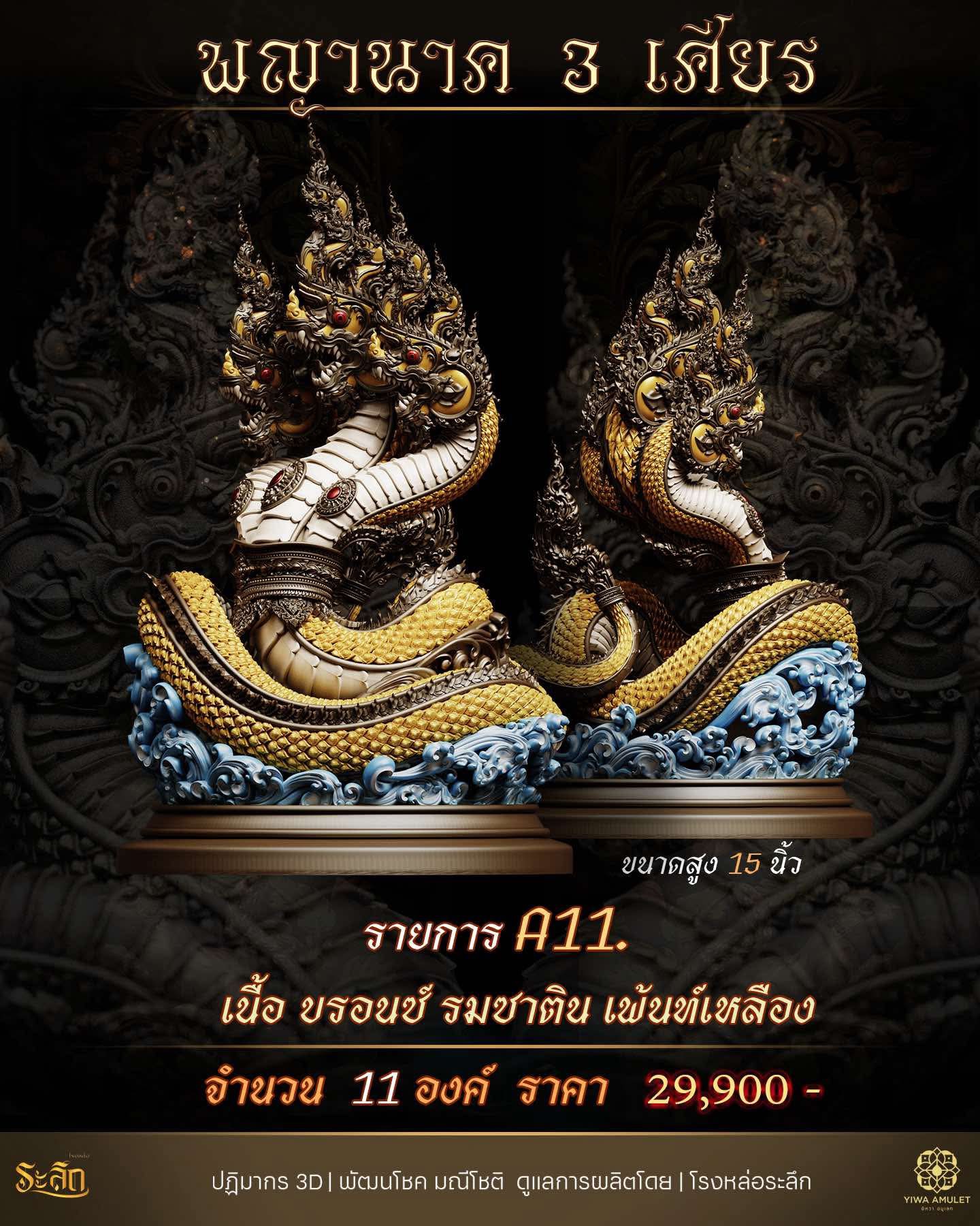 พญานาค 3 เศียร ขนาด 5 ซม กับขนาด 6 นิ้ว จัดสร้าง Yiwa Amulet
