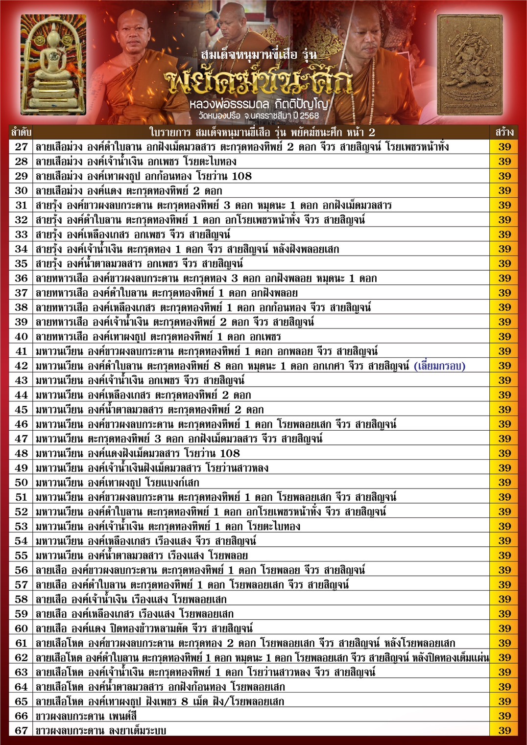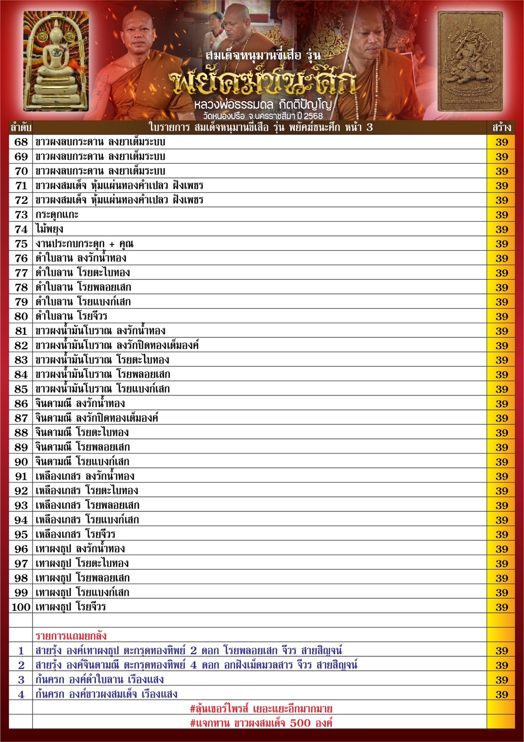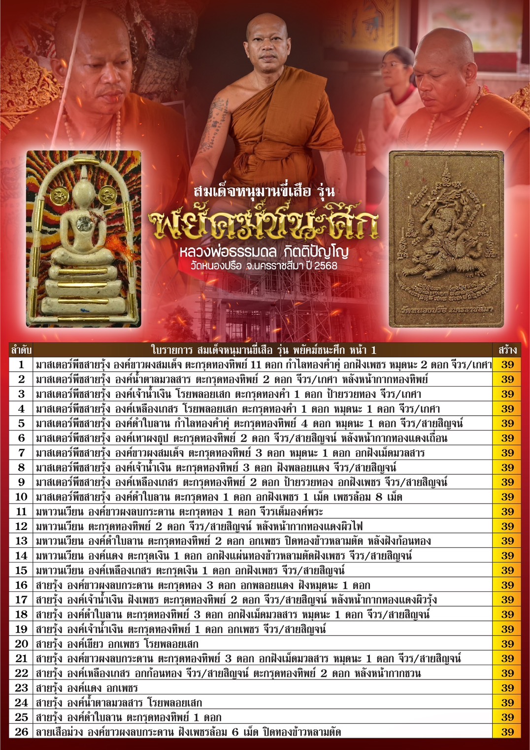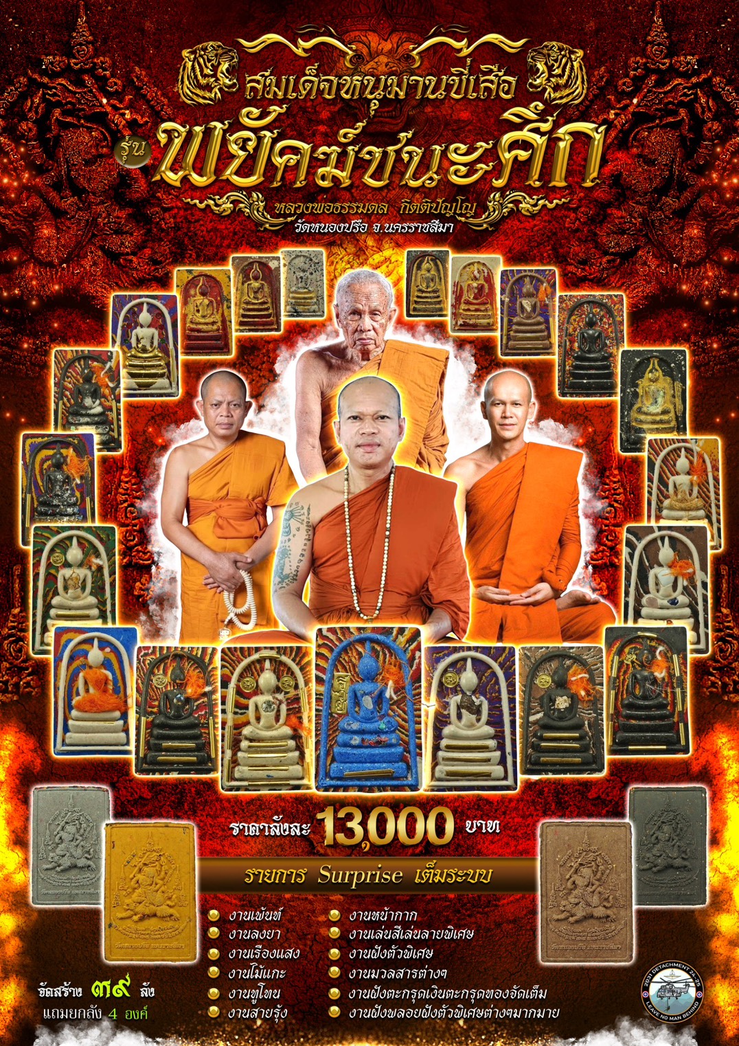 สมเด็จหนุมานขี่เสือ รุ่น พยัคฆ์ชนะศึก หลวงพ่อธรรมดล กิตติปัญโญ วัดหนองปรือ จ.นครราชสีมา การันตียกลัง ตะกรุดทองคำ ตะกรุดเงิน ตะกรุดทอง หุ้มทองคำเปลวแท้ งานเพ้นท์ งานลงยา ฝังเพชร ฝั่ง option งานหน้ากาก งานไม้มงคลแกะ งานกระดูกช้างแกะ งานเลี่ยมกรอบ และลุ้นเซอร์ไพรส์อีกมากมาย สร้าง39ลัง 1ลัง รับ104ลุ้น ราคาจอง13,000 #ขวัญพระเครื่อง #ขวัญธานันท์พระเครื่อง