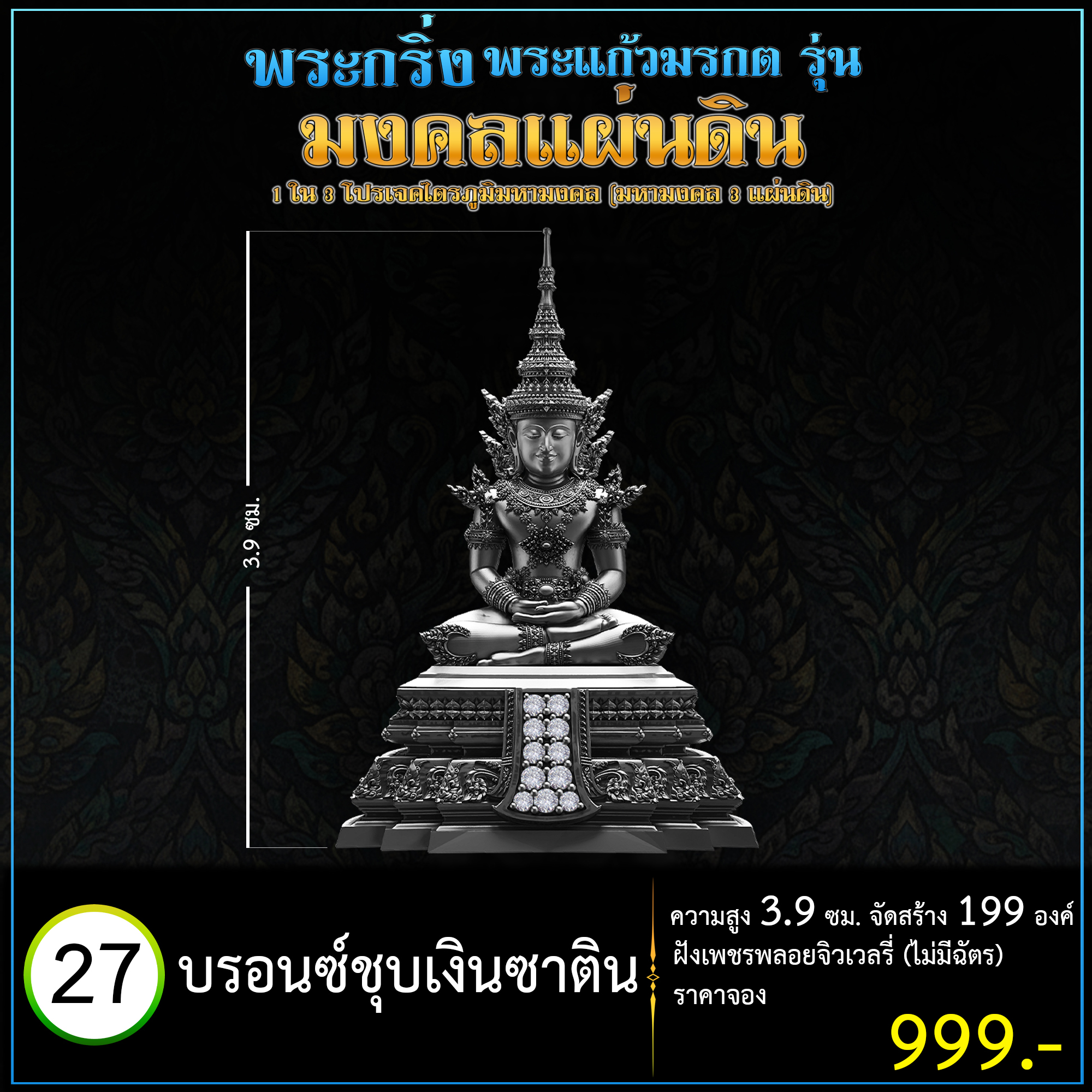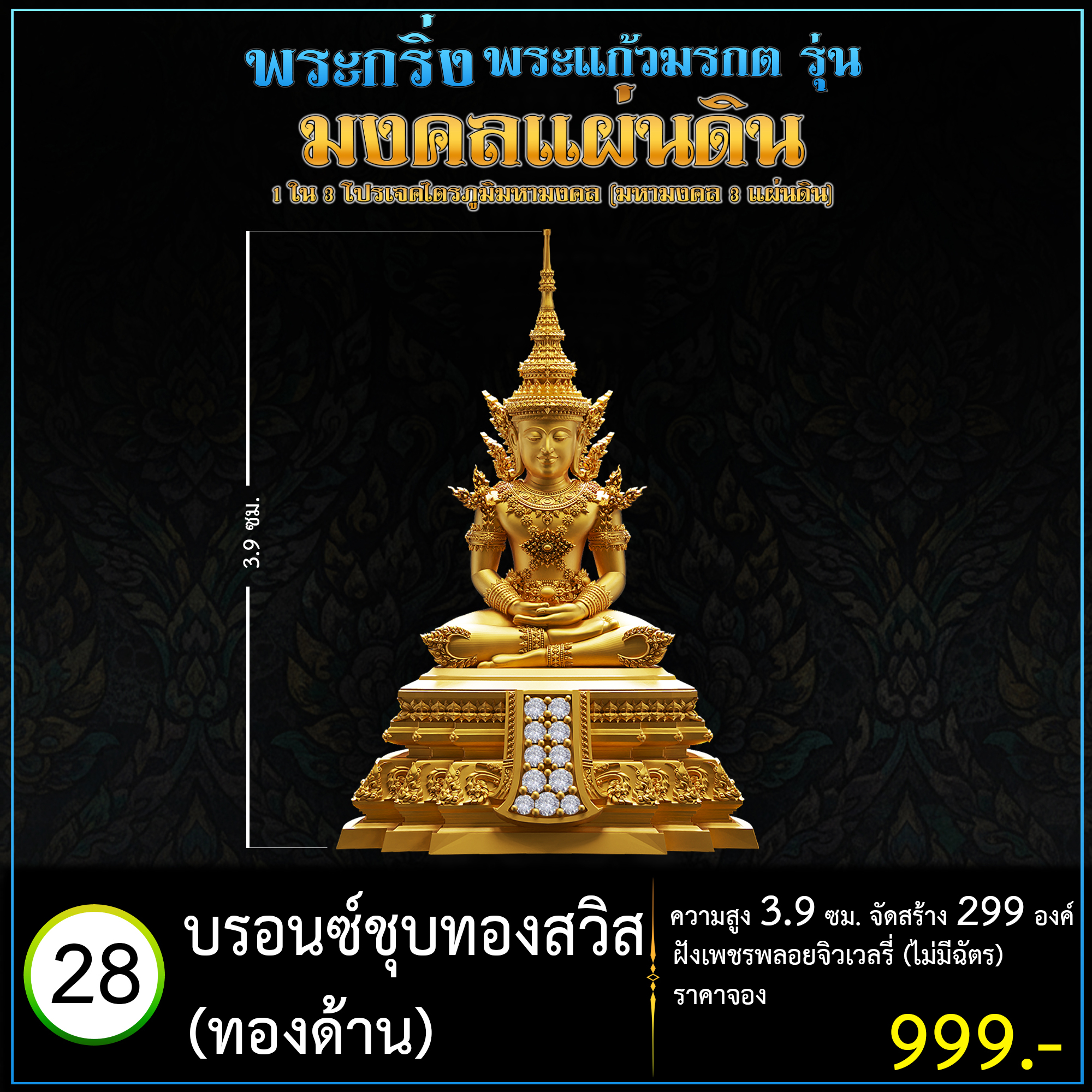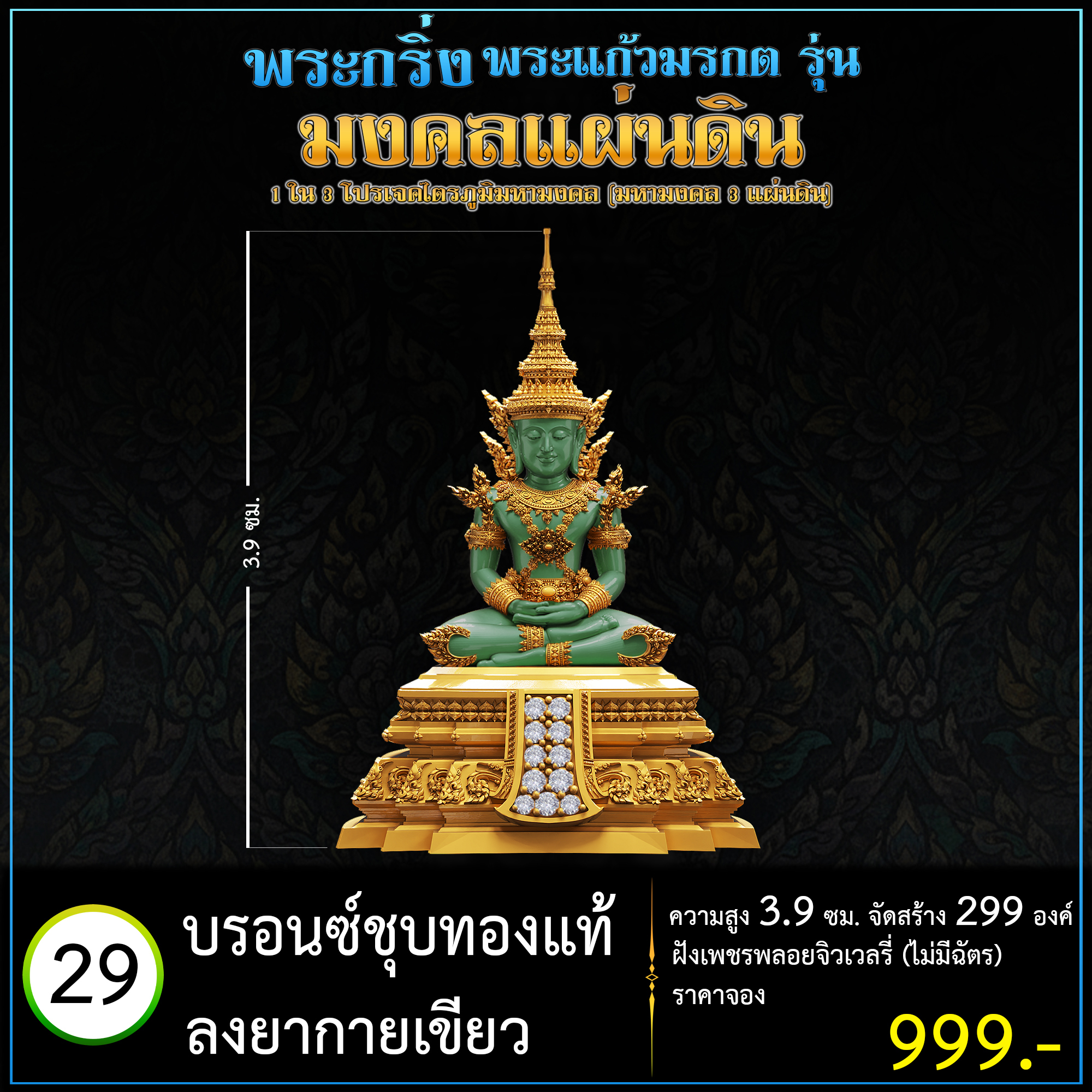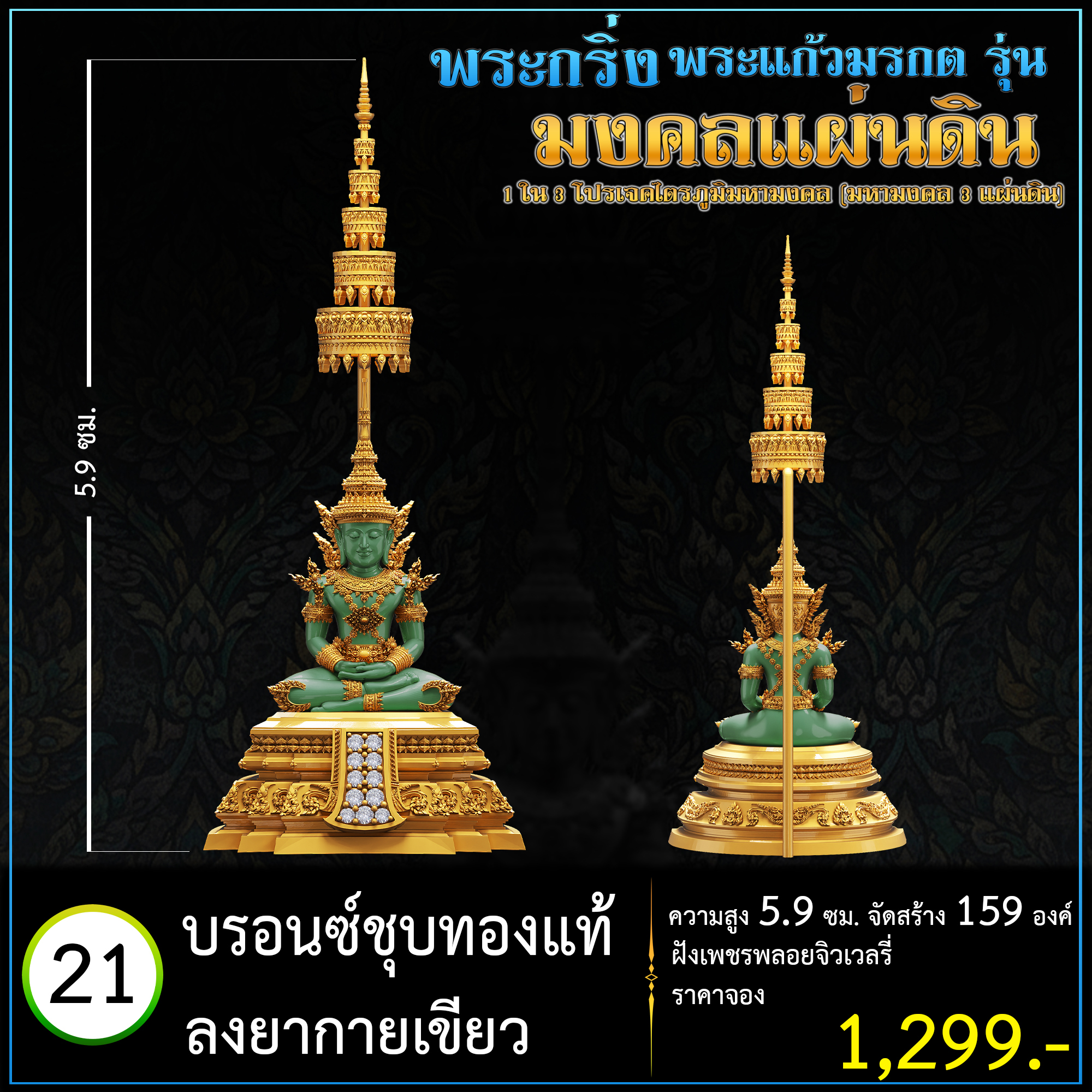 พระแก้วมรกตพุทธศิลป์ รุ่น มงคลแผ่นดิน (ขนาดบูชา) หน้าตัก 5 นิ้วฝังเพชร 1 ใน 3 โปรเจค ไตรภูมิมหามงคล (มหามงคล 3 แผ่นดิน) มหามงคลชุดสุดท้ายแห่งเมืองหลวง "กรุงเทพมหานคร) งานหล่อพุทธศิลป์คุณภาพระดับงานจิวเวลรี่พรีเมี่ยม เป็นเทคโนโลยีที่หล่อสวยงามคมชัดที่สุดในปัจจุบัน 1 ใน 3 โปรเจค ไตรภูมิมหามงคล (มหามงคล 3 แผ่นดิน) หลวงพ่อโสธร มงคลแห่งเมืองแปดริ้ว (ฉะเชิงเทรา) พระพุทธชินราช มงคลแห่งเมืองสองแคว (พิษณุโลก) พระแก้วมรกต มงคลแห่งเมืองหลวง (กรุงเทพมหานคร) พระแก้วมรกต รุ่น มงคลแผ่นดิน พระแก้วมรกต เป็นพระพุทธรูปศักดิ์สิทธิ์คู่บ้านคู่เมืองของประเทศไทย ซึ่งประดิษฐานอยู่ที่วัดพระศรีรัตนศาสดาราม (วัดพระแก้ว) จ.กรุงเทพมหานคร จึงเกิดการรังสรรค์ผลงานชุด มงคลแผ่นดิน ซึ่งเป็นการสร้างพระแก้วมรกต "ในแบบพุทธศิลป์" และเป็น 1 ใน 3 โปรเจค ไตรภูมิมหามงคล (มหามงคล 3 แผ่นดิน) การออกแบบ โดยองค์พระออกแบบเป็นพระพุทธรูปปางสมาธิ ทรงเครื่องฤดูร้อน ประทับบนฐานชุกชีสามชั้น ผ้าทิพย์มีองค์พระอินทร์ทรงช้างเอราวัณประดับอยู่ หมายถึง การดูแลปกป้องพระพุทธศาสนา และยังเป็นตราประจำจังหวัดกรุงเทพมหานคร ฉัตร 5 ชั้น สื่อถึงพระพุทธเจ้า 5 พระองค์ เป็นการเทิดทูนองค์พระบารมีอันเป็นที่เคารพสูงสุด และเป็นบารมีแห่งธรรมราชา เป็นการอวยพรให้เกิดความร่มเย็นเป็นสุขแก่แผ่นดินและผู้บูชา ขนาดการจัดสร้าง ขนาดหน้าตัก 5 นิ้ว (ฝังเพชรพลอยจิวเวลรี่) / หน้าตัก 3 นิ้ว / หน้าตัก 1.5 นิ้ว วัตถุประสงค์ในการจัดสร้าง เพื่อสบทบทุนร่วมสร้างศาลาธรรมสังเวช ณ วัดเด่นโบสถ์โพธิ์งาม พิธีพุทธาภิเษก โดยพระเกจิคณาจารย์ เปิดจองวันที่ 5 พ.ย.2568 - 30 พ.ย.2568 รับผลงานหลังพิธีเสกใหญ่ ช่วงเดือน มีนาคม 2568 ออกแบบลายเส้นโดย เจนณรงค์ ทิพยเทวะรังสรรค์ ออกแบบปั้น 3D โดย พระรามห้า 3D โรงหล่อผลิตโดย โรงหล่อพระรามห้า (ดีงามพระรามห้า) ดำเนินการจัดสร้างโดย ศิลป์คเณศวร #ขวัญพระเครื่อง #ขวัญธานันท์พระเครื่อง