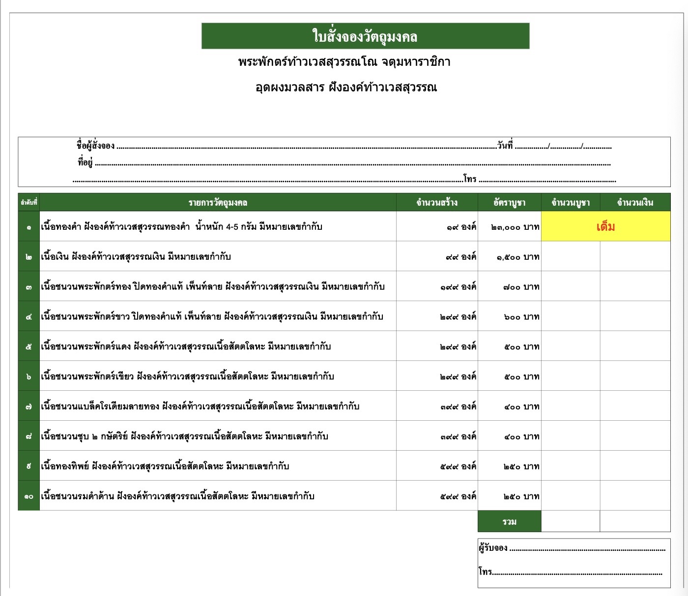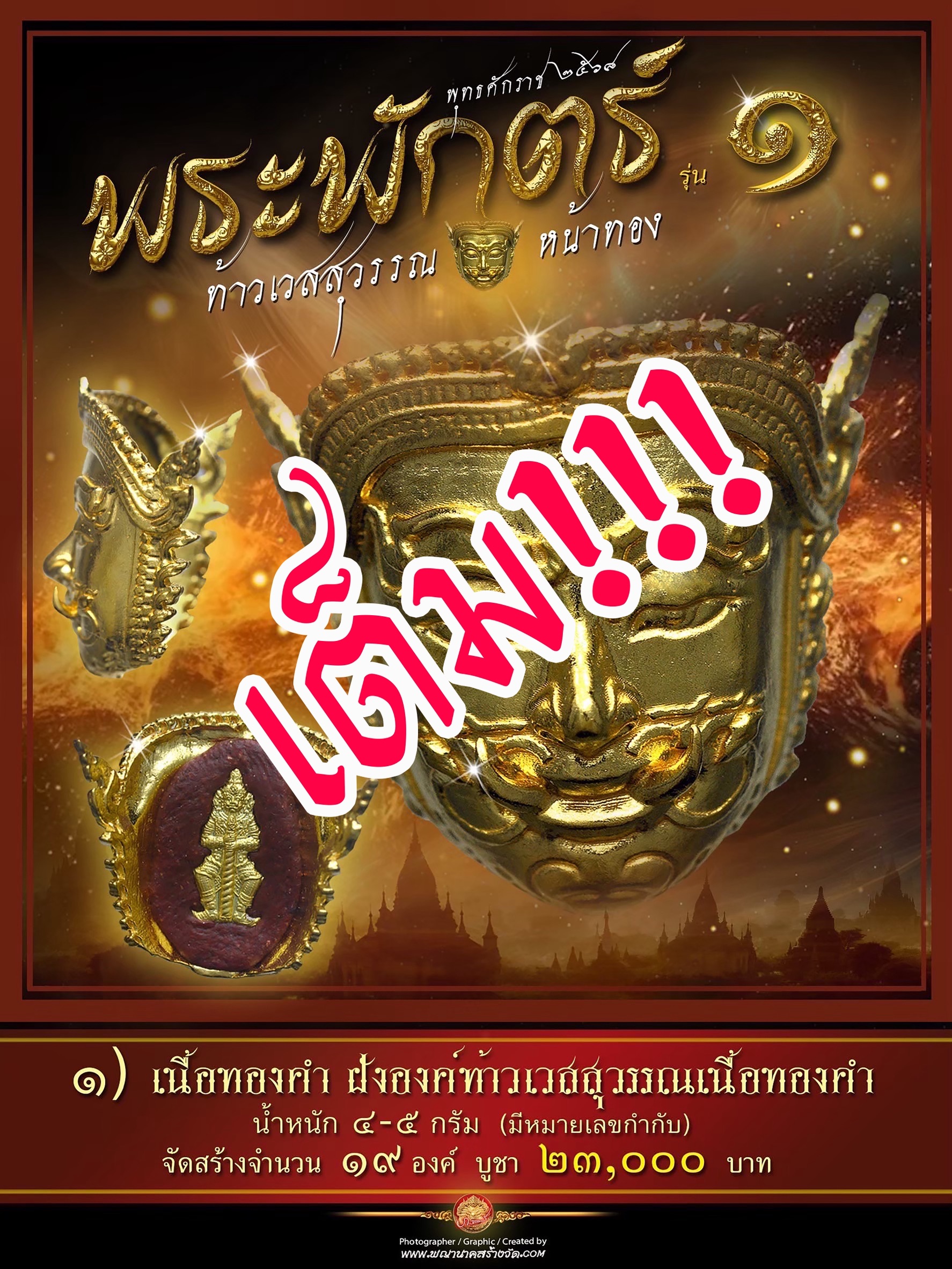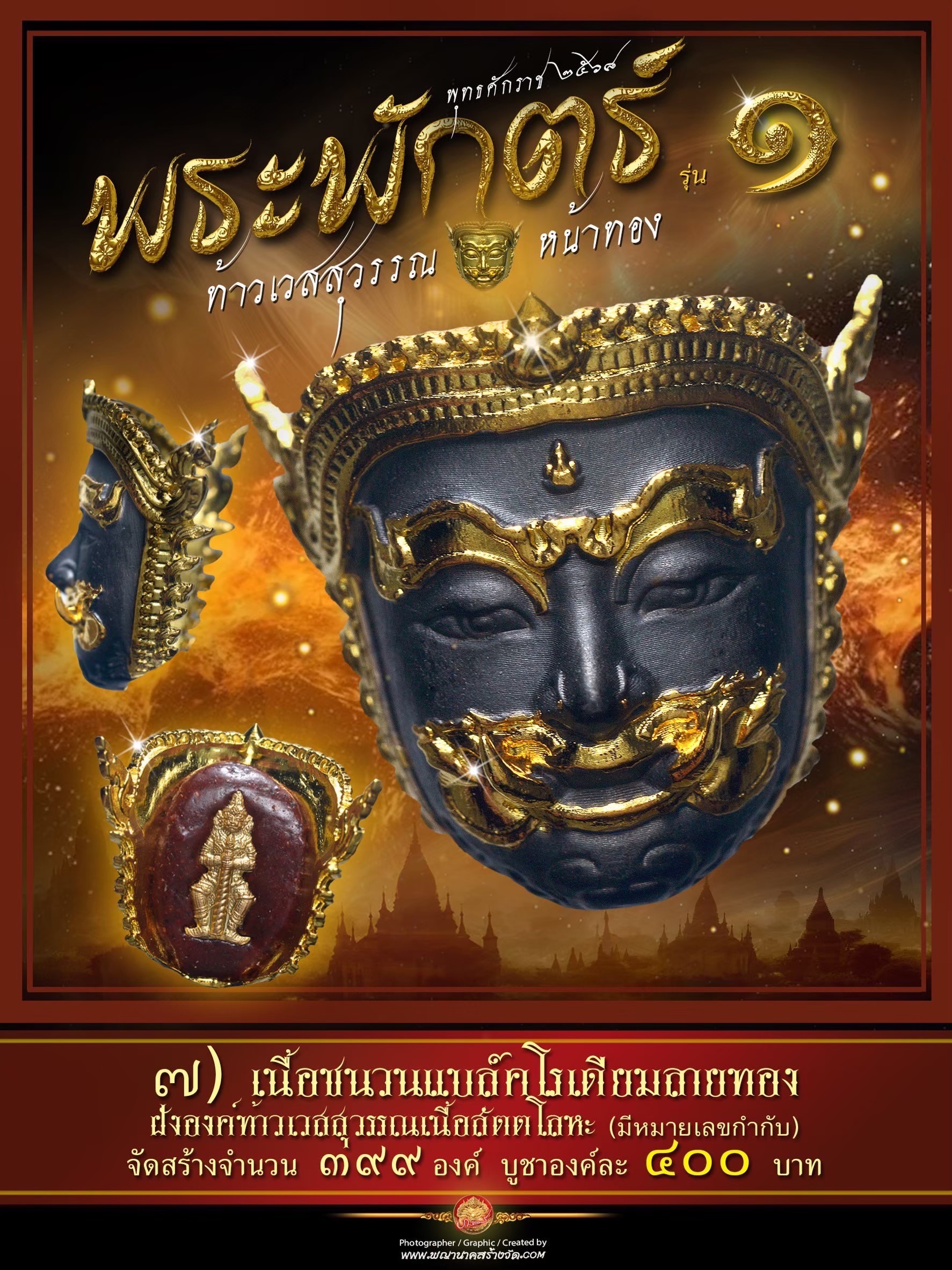 จัดสร้างครั้งแรก พระพักตร์ท้าวเวสสุวรรณหน้าทอง รุ่น ๑ พุทธศักราช ๒๕๖๘ บรรจุผงพุทธคุณ ประทับหลังองค์ท้าวเวสสุวรรณ อธิษฐานจิตครบ ๑ ปีเต็ม ผู้ใดได้เห็นเป็นที่สุดแห่ง นะ เมตตา จัดสร้างโดย อุทยานท้าวเวสสุวรรณโณ หลวงพ่ออิฏฐ์ อุปถัมภ์ จ.นครปฐม วัตถุประสงค์ สมทบทุนมูลนิธิสรรพราเชนทร์ เพื่อการศึกษาทุนนักเรียนเรียนดี ประพฤติดี แต่ขาดทุนทรัพย์ เข้าพิธีอธิษฐานจิตครั้งสุดท้าย ๓๐ พ.ย. รับพระวันที่ ๒ ธ.ค. ๖๘