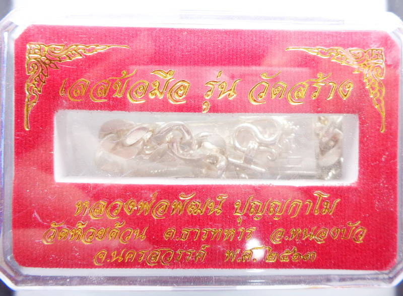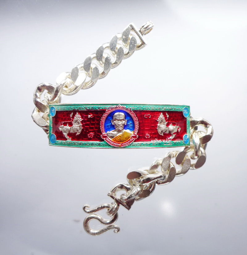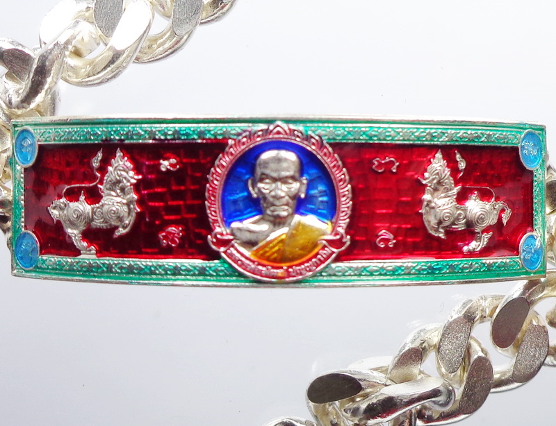 หลวงพ่อพัฒน์ วัดห้วยด้วน เลสข้อมือ วัดสร้าง เนื้อเงิน ลงยา (KP2066)