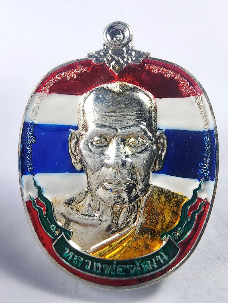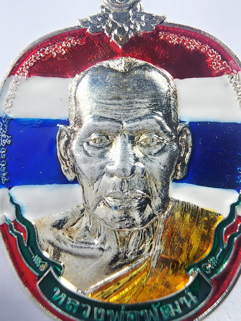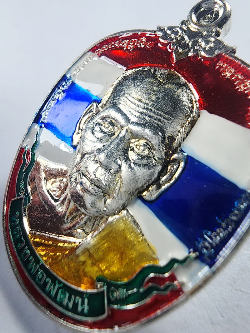 หลวงพ่อพัฒน์ รวยเหนือดวง วัดห้วยด้วน นครสวรรค์ ลงยา ลายธงชาติ (KA584)