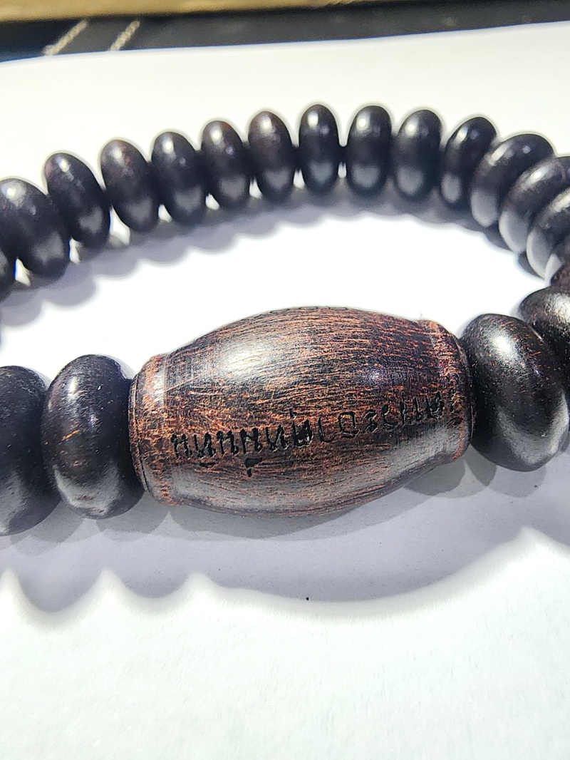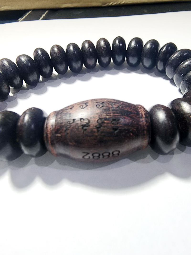 หลวงปู่มหาศิลา กำไลข้อมือ ประคำไม้แก่นมะขามโปร่งฟ้า (AC907)