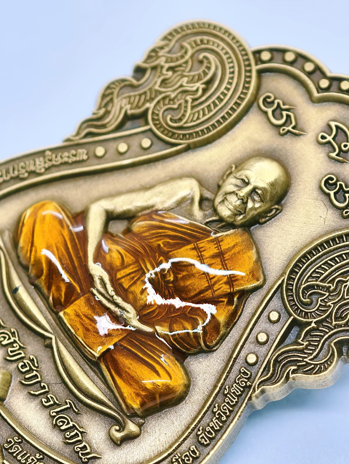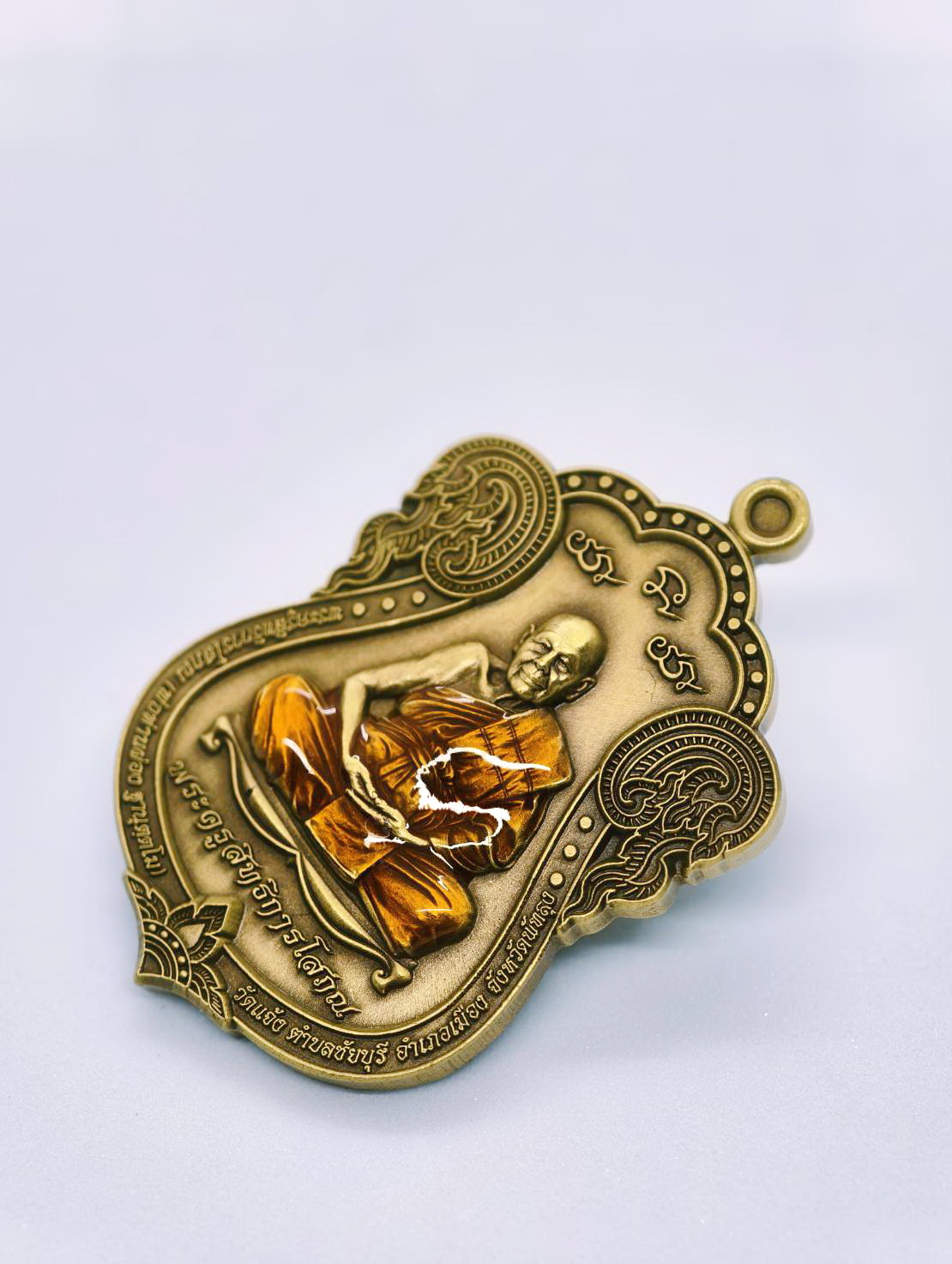 พ่อท่านผ่อง วัดแจ้ง จังหวัดพัทลุง เสมา เจริญยศ ลงยา (AC1015)