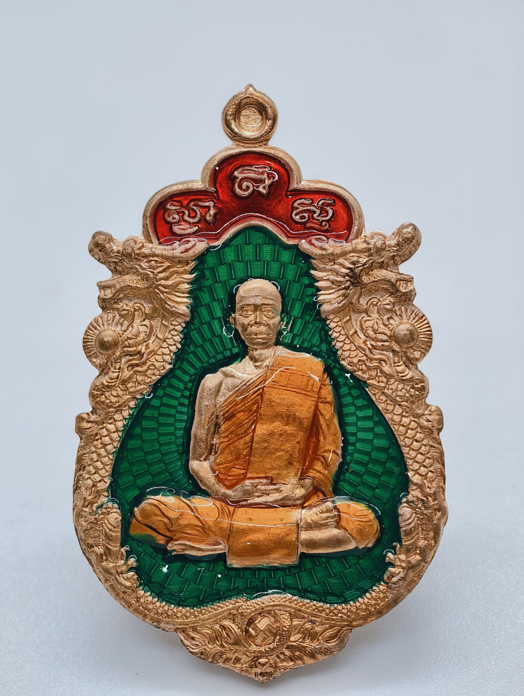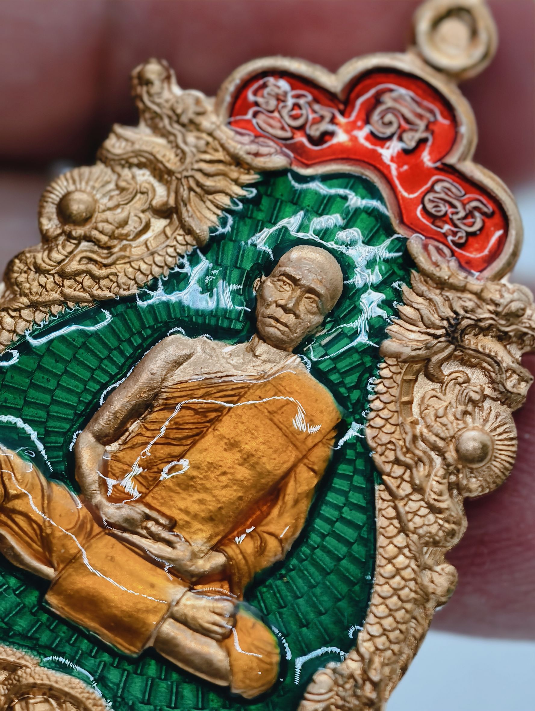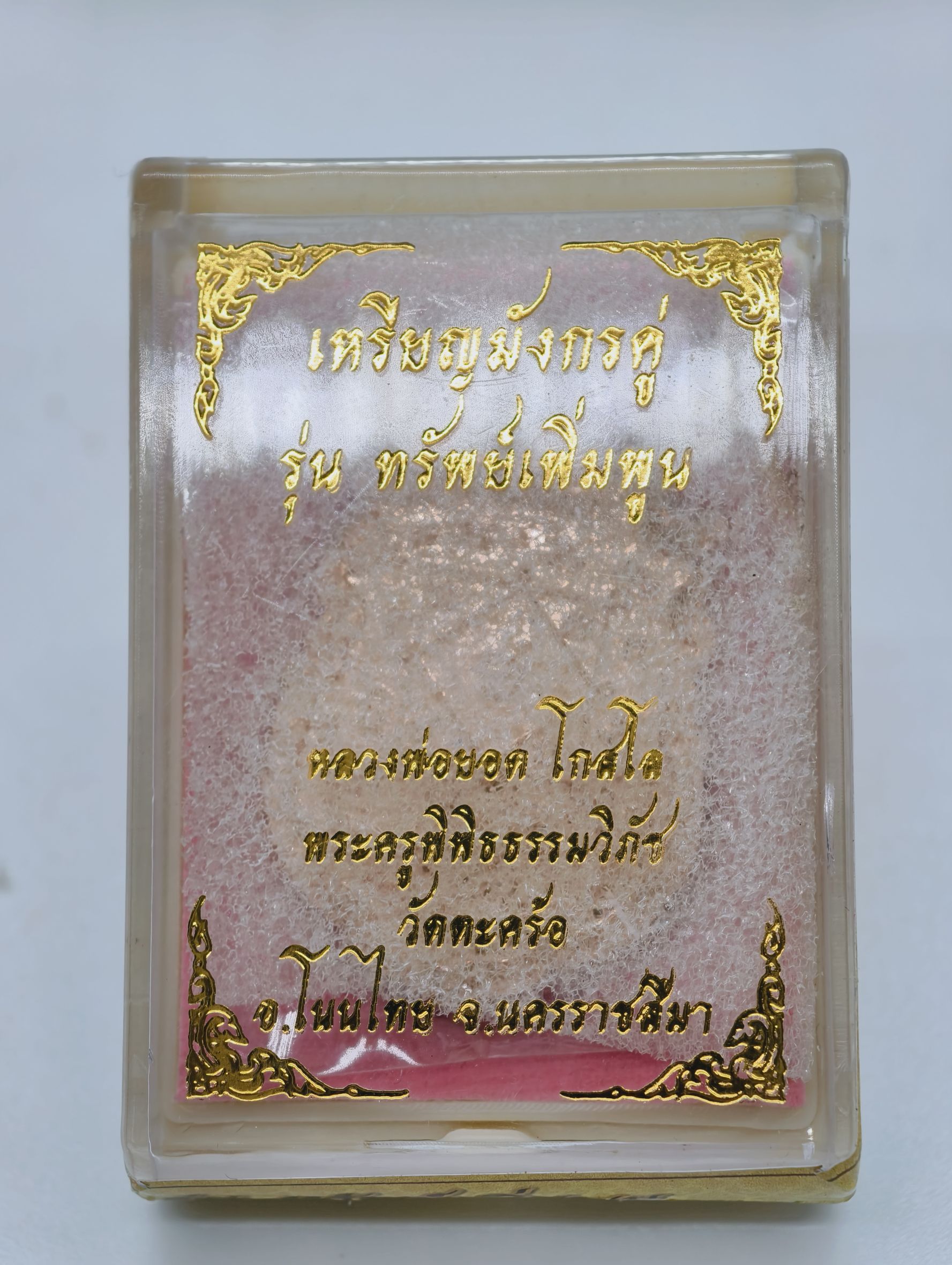 หลวงพ่อยอด วัดตะคร้อ เหรียญมังกรคู่ ทรัพย์เพิ่มพูน ลงยา KA2139