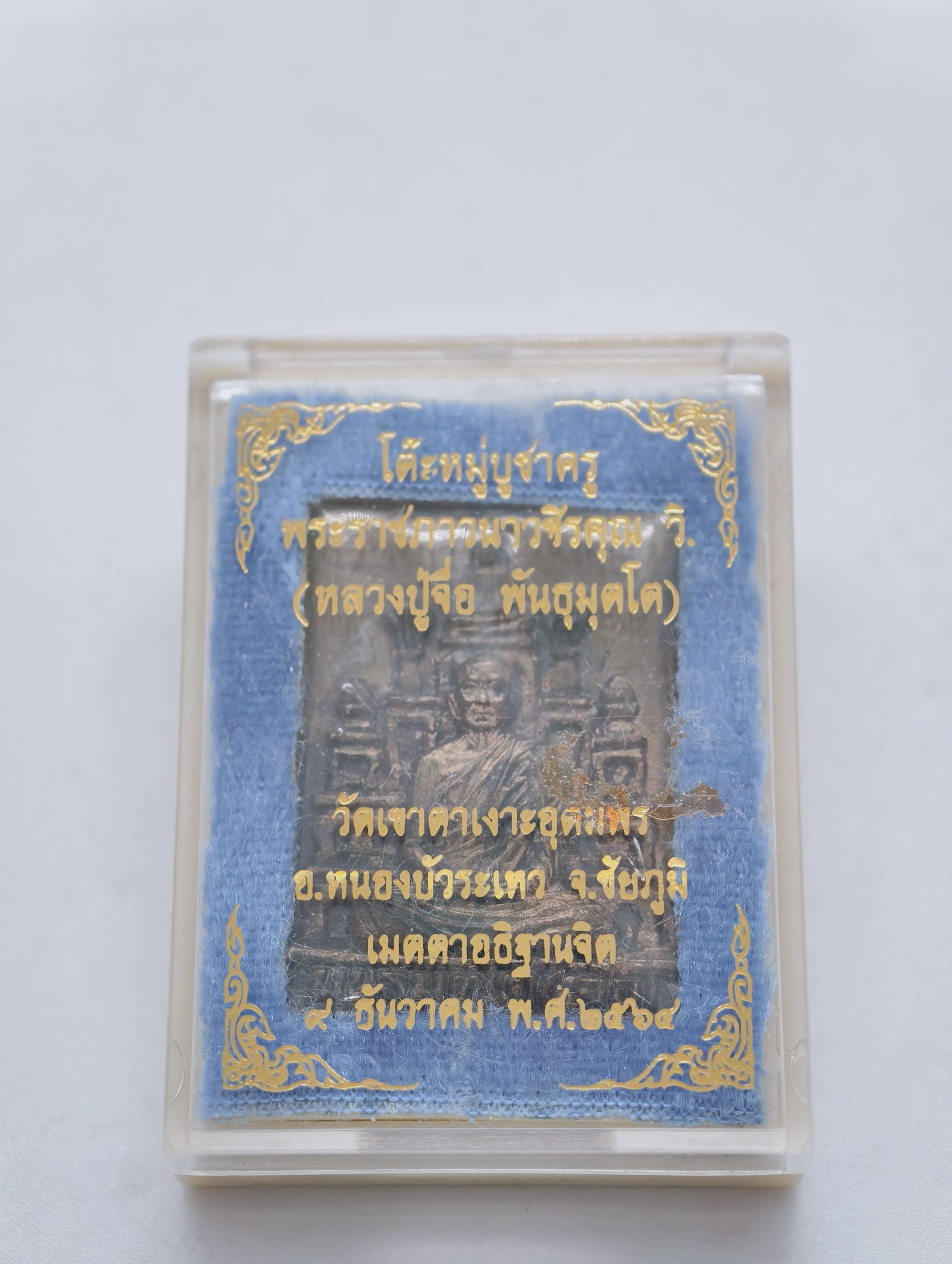 หลวงปู่จื่อ วัดเขาตาเงาะอุดมพร เหรียญโต๊ะหมู่ บูชาครู เนื้อนวะโลหะ หนา AC1738