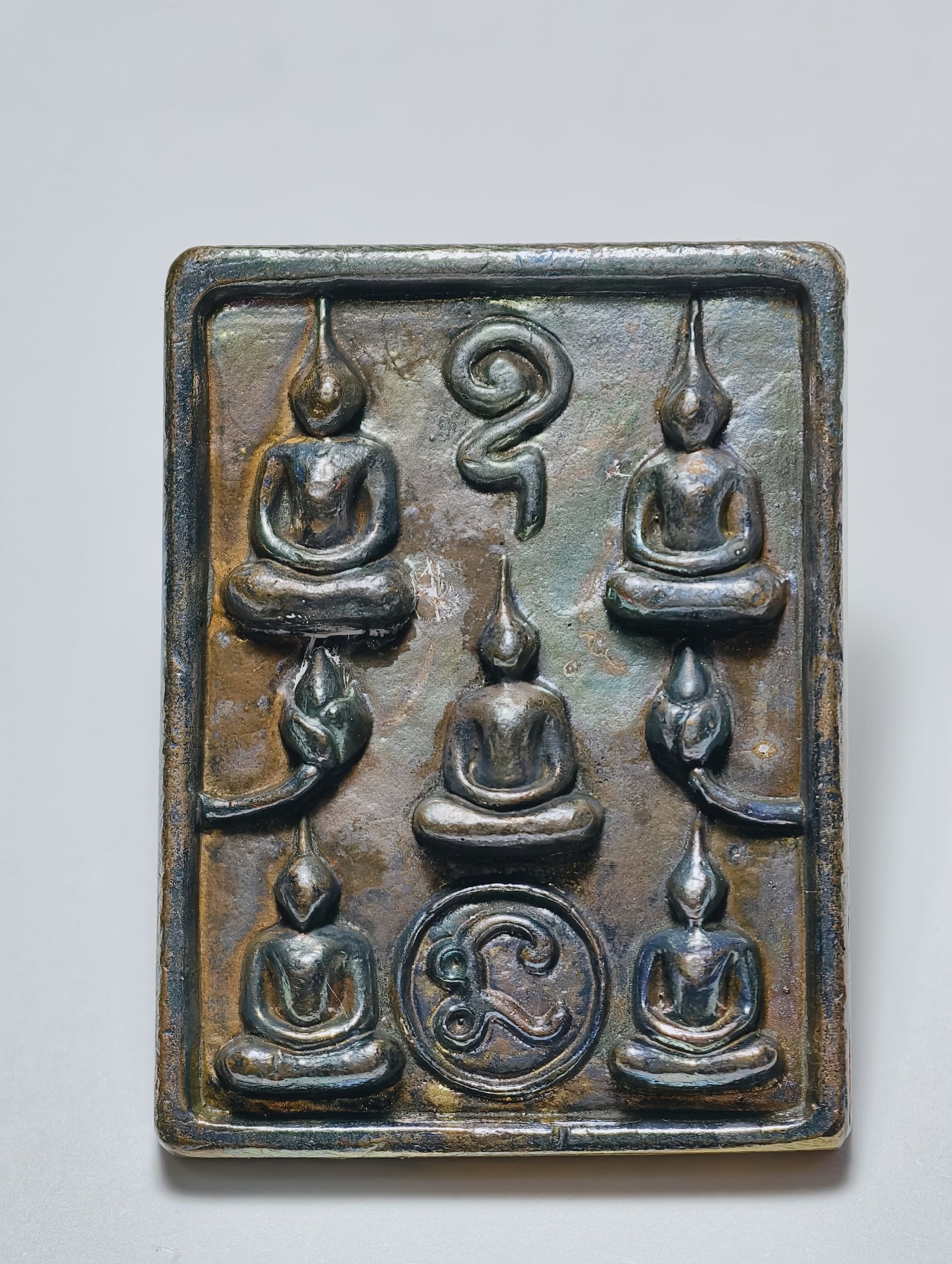 หลวงปู่อิ่ม วัดทุ่งนาใหม่ เหรียญหล่อ ชนะมาร พิมพ์พระเจ้า ๕ พระองค์ (AC1946)