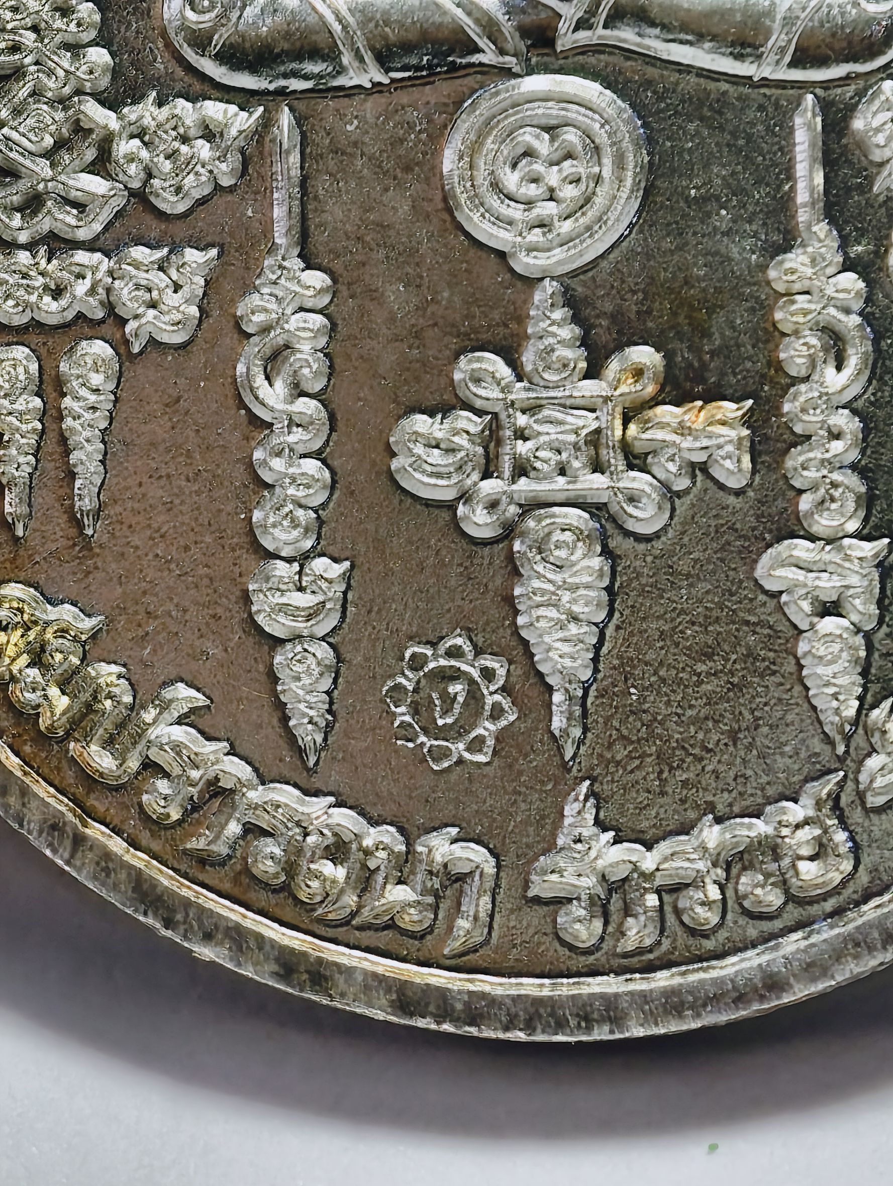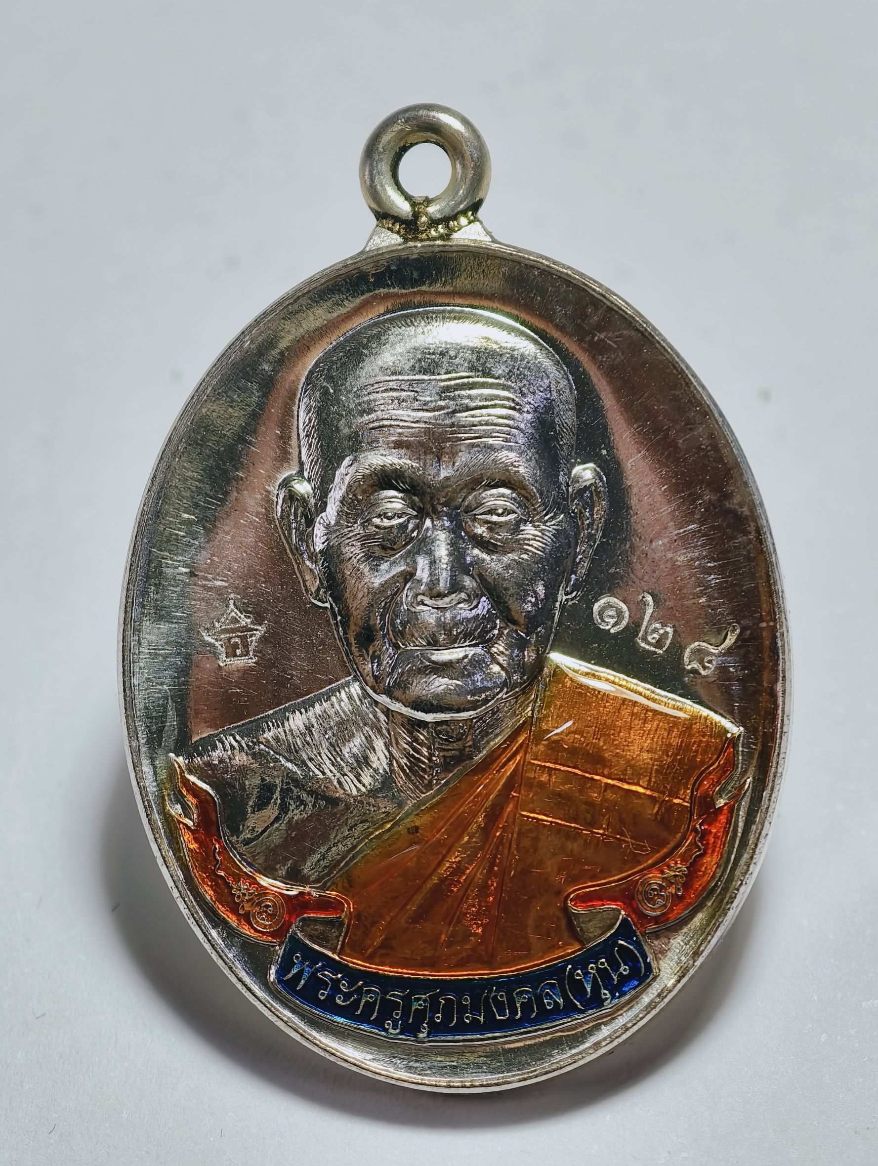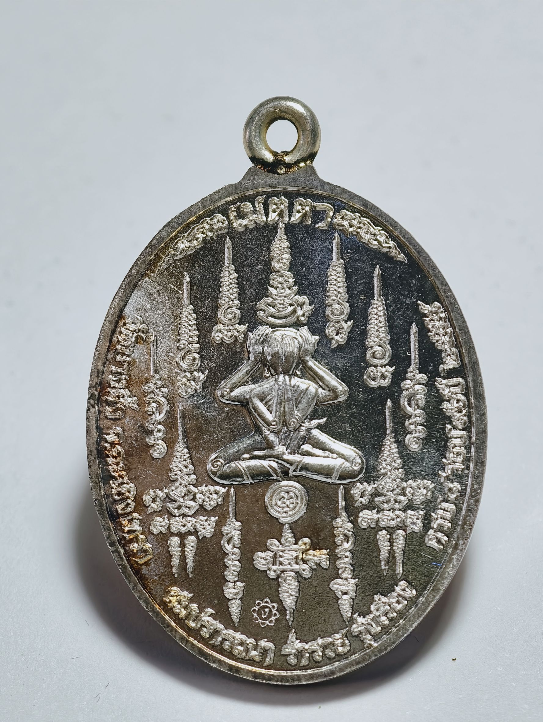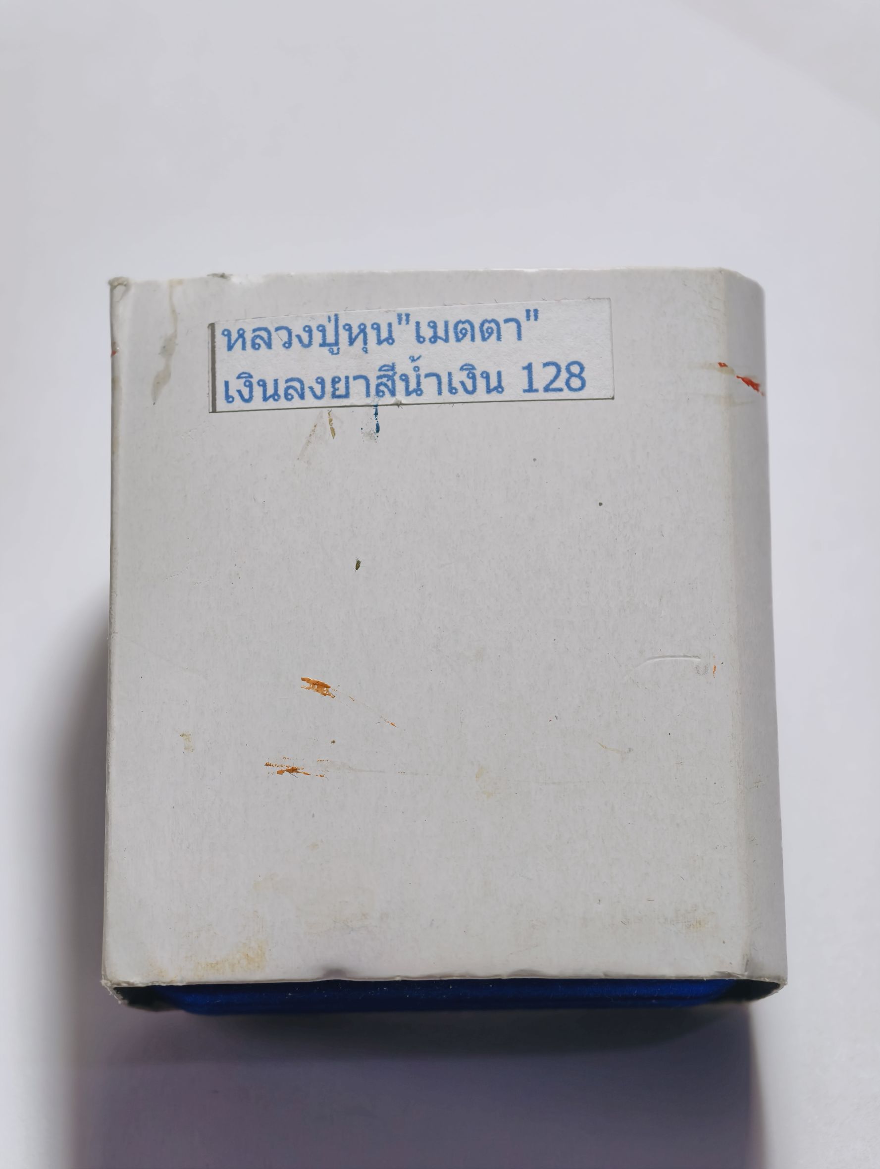 หลวงปู่หุน วัดบางผึ้ง เหรียญห่วงเชื่อม เมตตา รุ่นแรก เนื้อเงินบริสุทธิ์ ลงยา (AB7661)