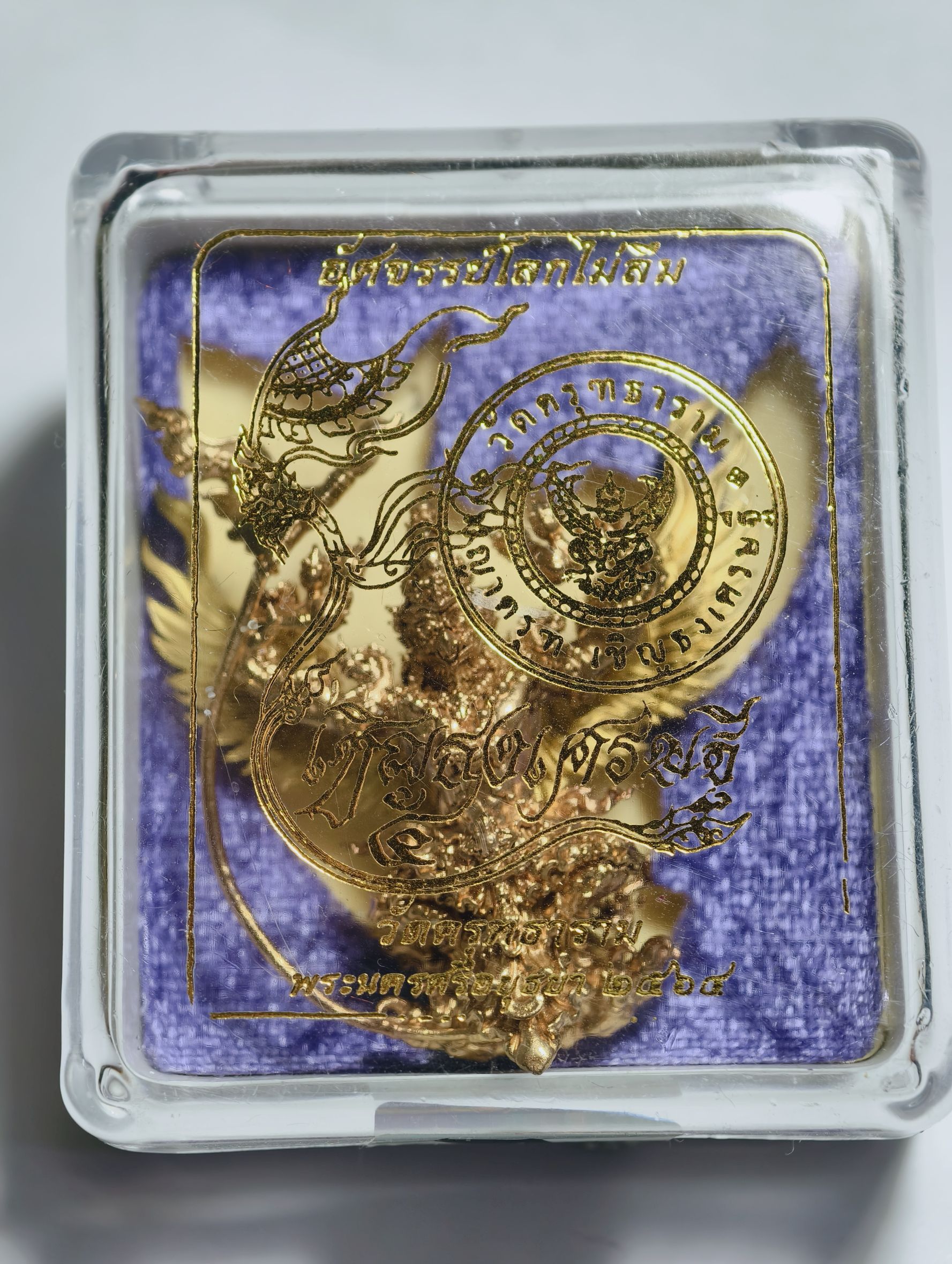พญาครุฑ วัดครุฑ รุ่น4 เชิญธงเศรษฐี อัศจรรย์โลกไม่ลืม ทองชมพู ปีกทูโทน พิมพ์ใหญ่ (AC5778)
