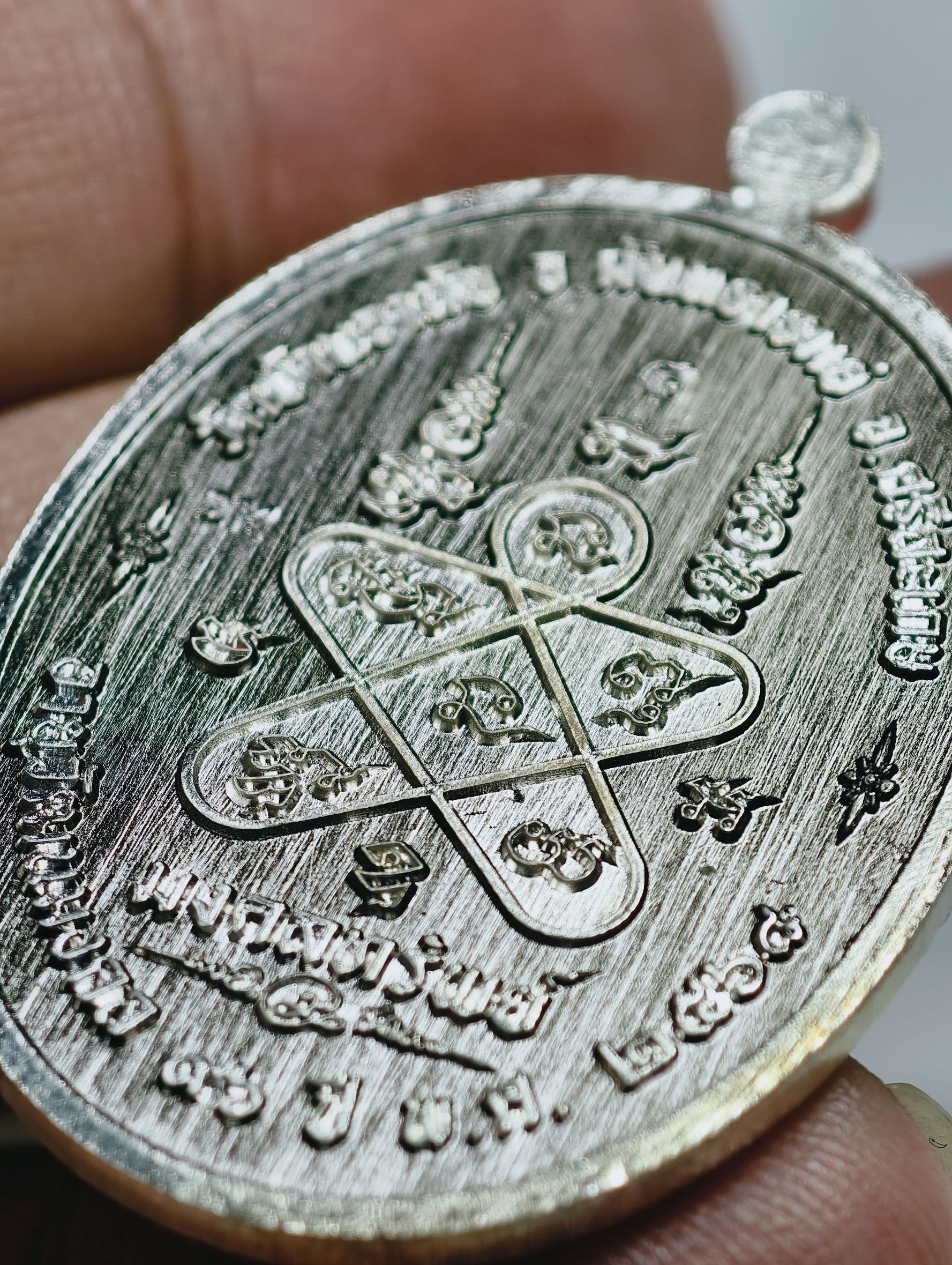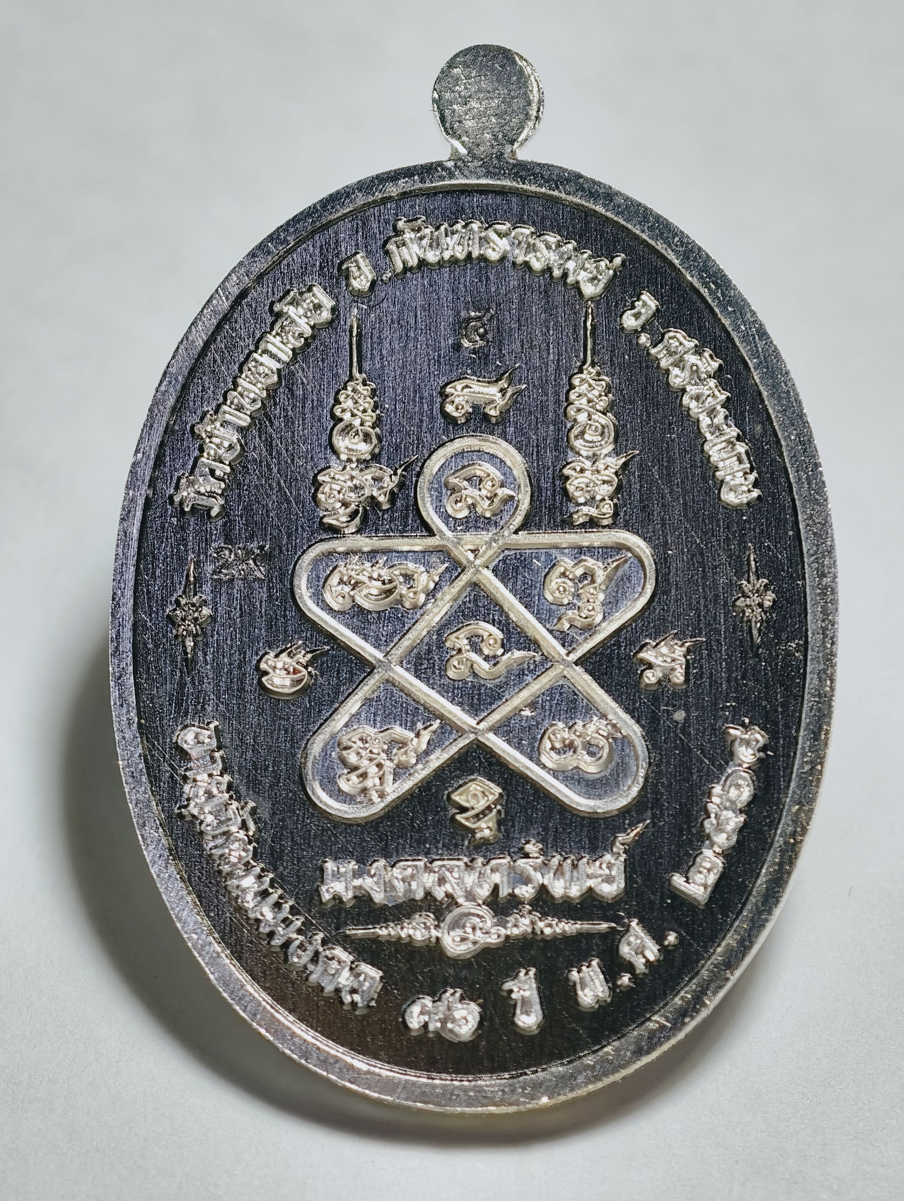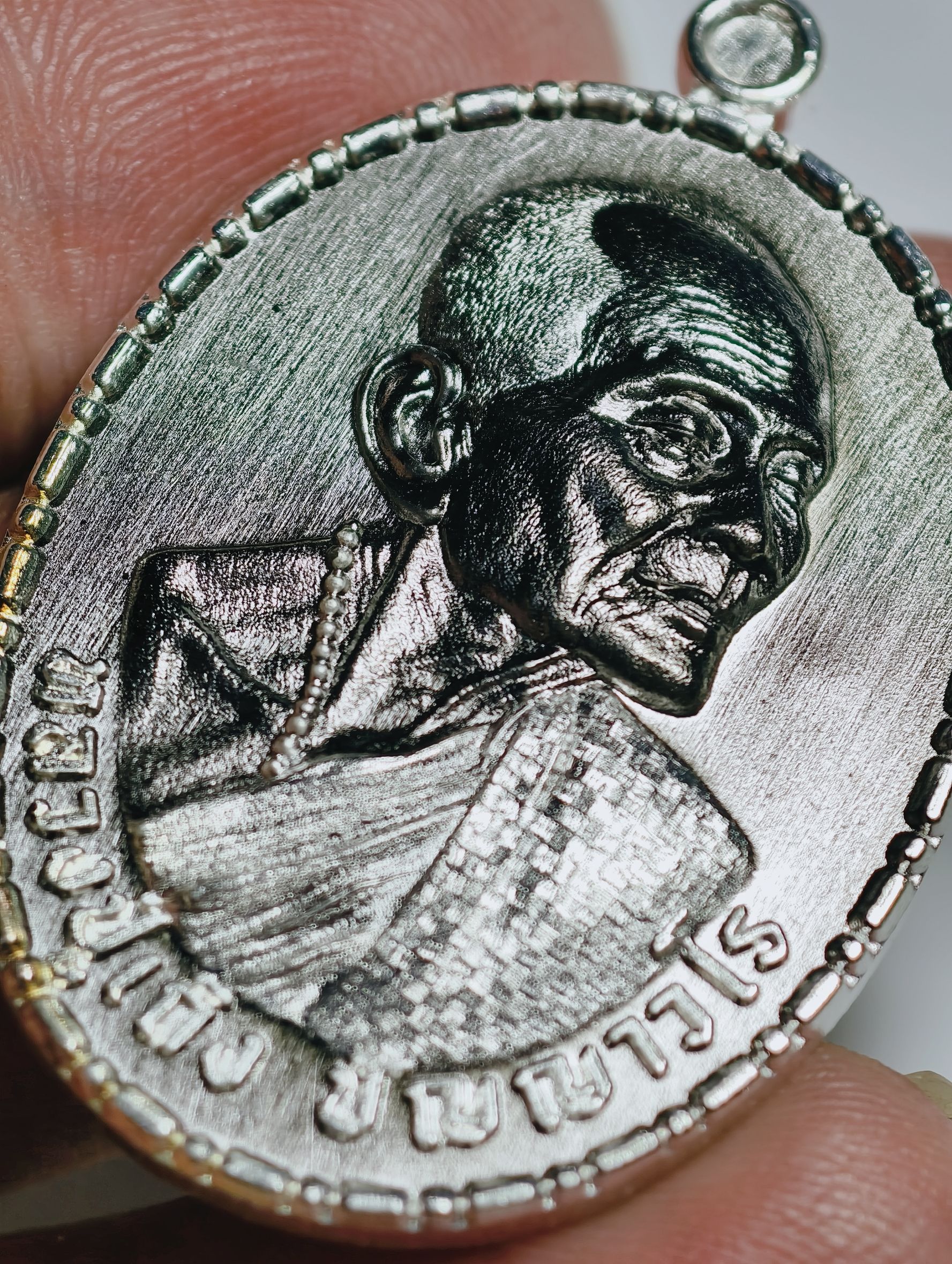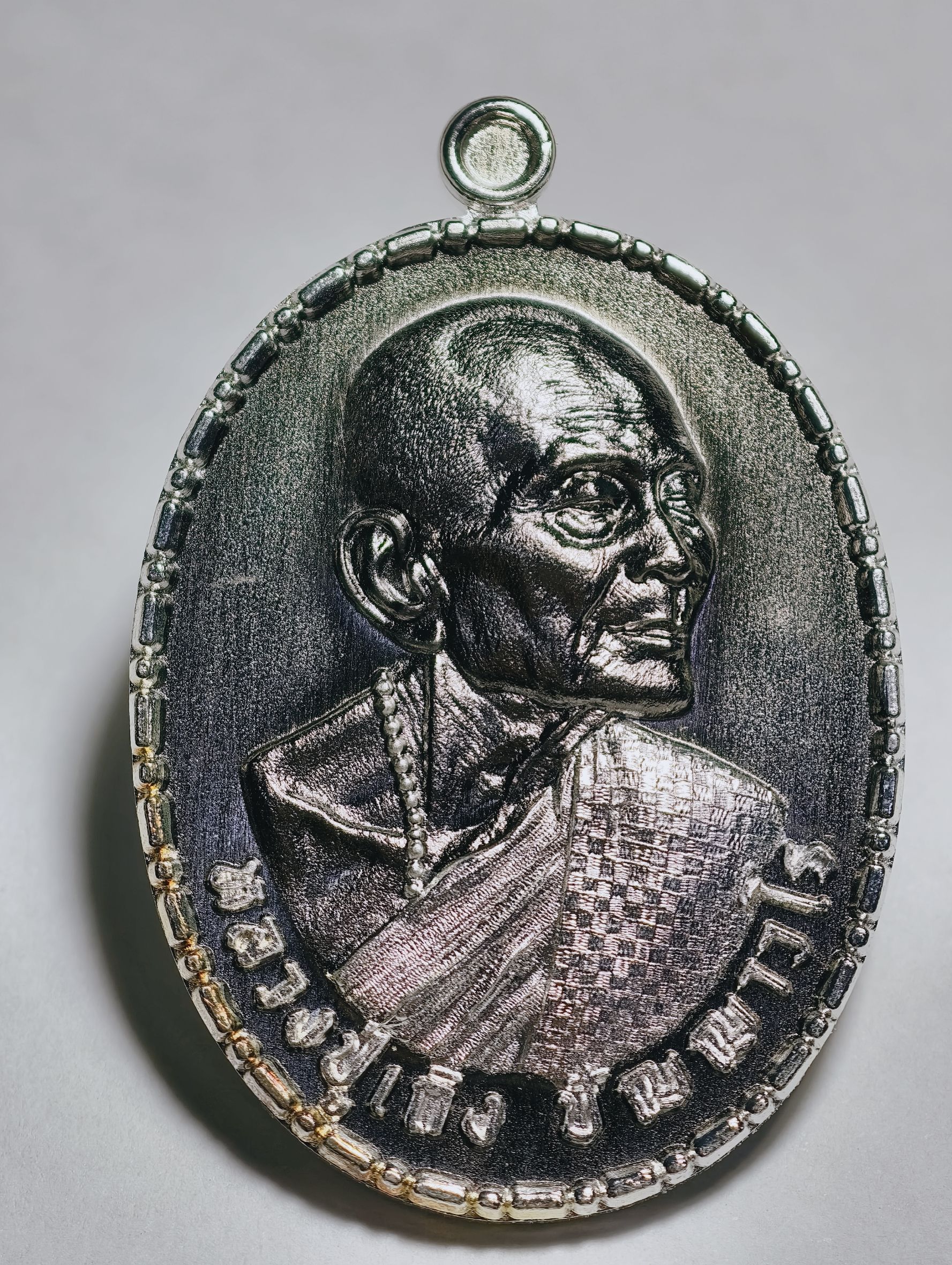 หลวงปู่เถิง วัดบ้านอาลัย เหรียญมงคลทรัพย์ black rodium ปัดเงิน จีวรเงิน AC2433