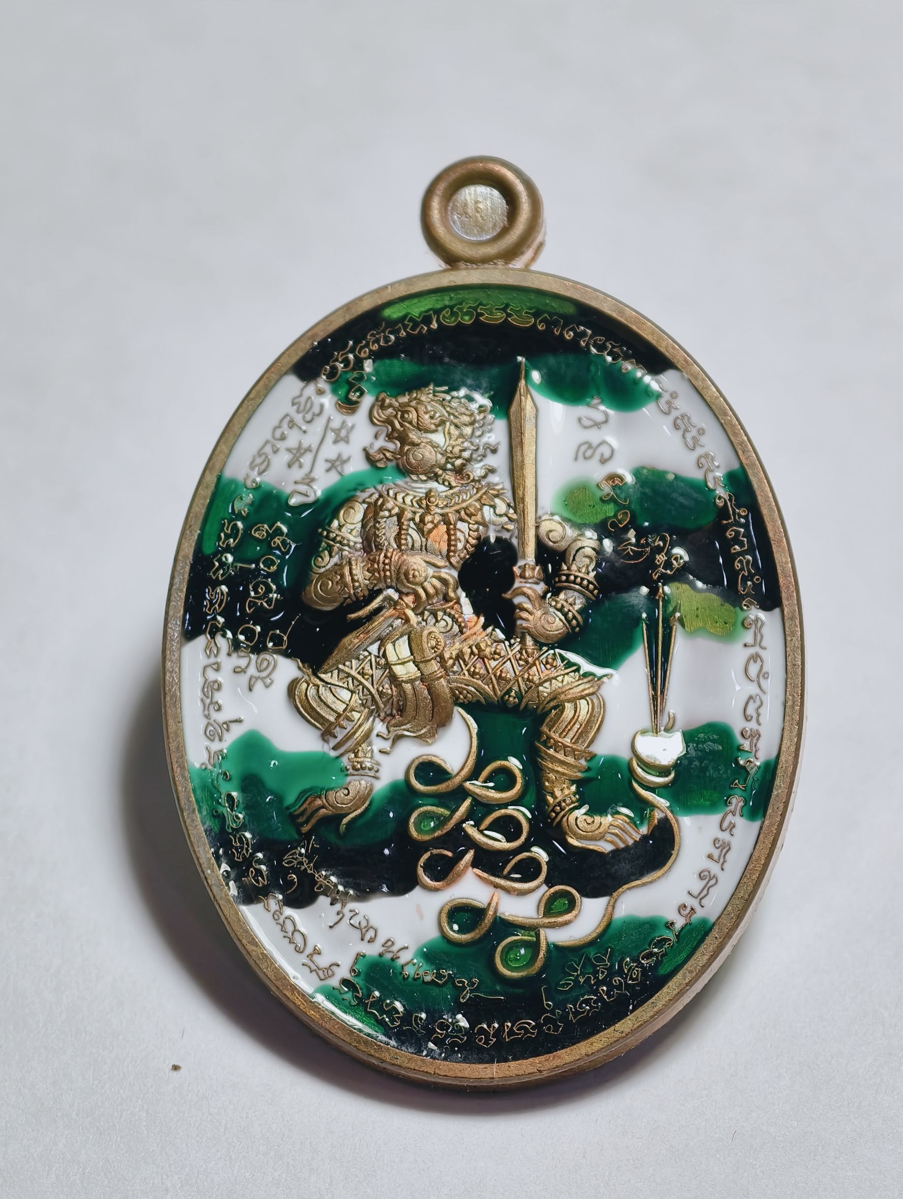 หลวงปู่มหาศิลา วัดพระธาตุหมื่นหิน เหรียญพหุรมาน หนุมานแผลงฤทธิ์ เพชรน้ำเอก ไทยนี้รักสงบ พิทักษ์ไทย หน้าล็อกเก็ต นวะโลหะ KA3479