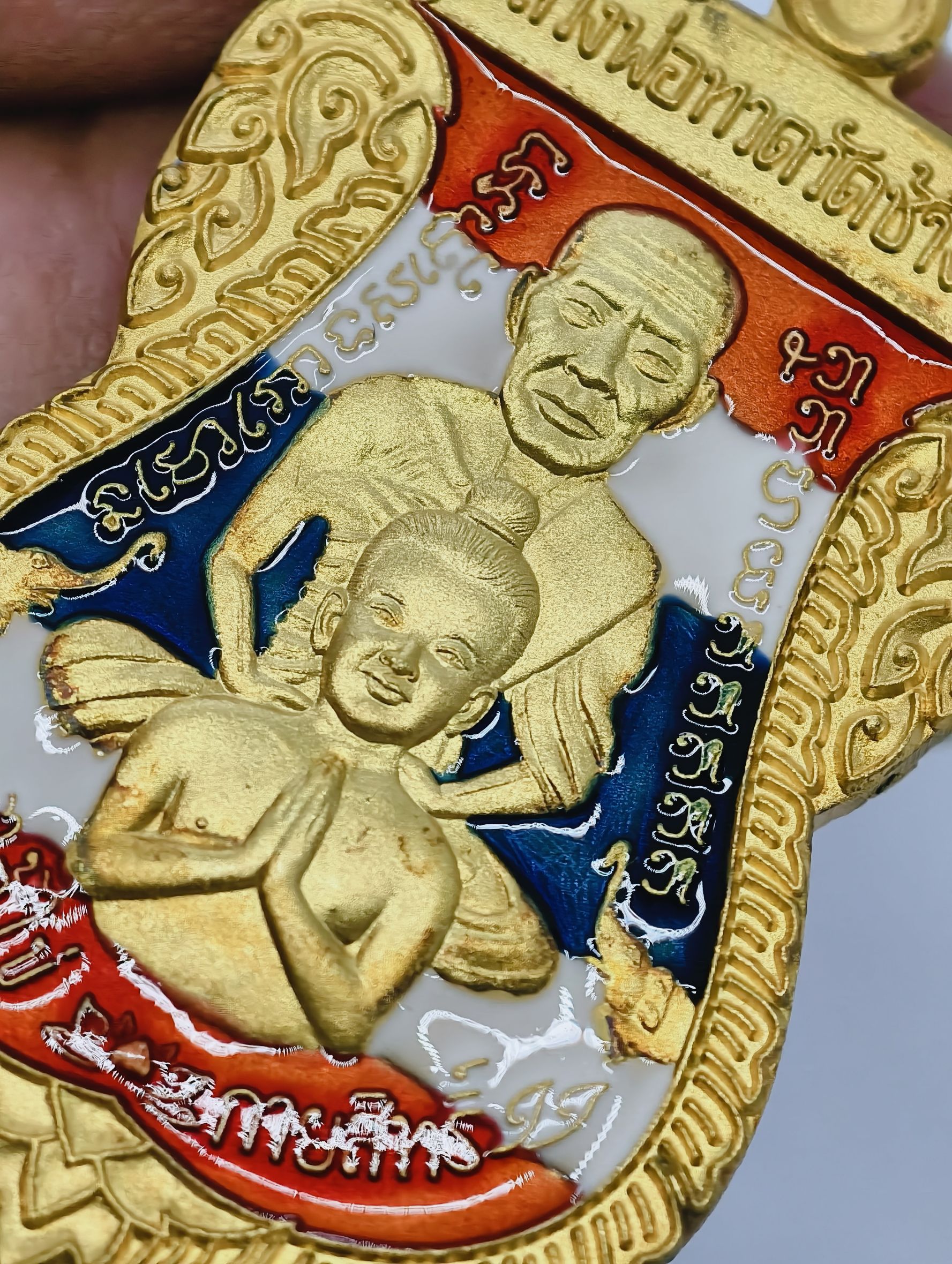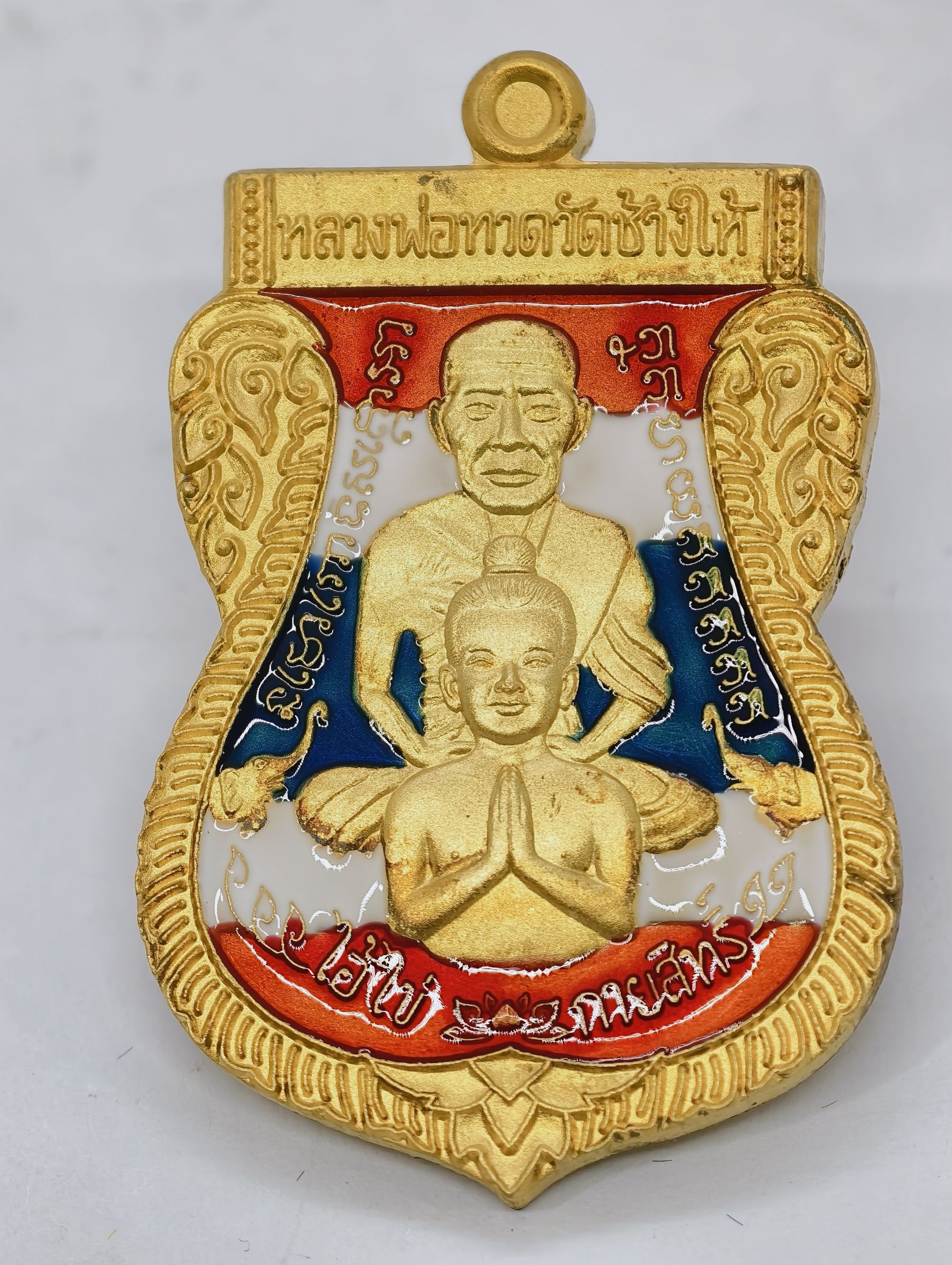 หลวงปู่ทวด วัดช้างให้ เสมาพุทธซ้อน ไอ้ไข่ กายสิทธิ์ ลงยา ลายธงชาติ KA2629