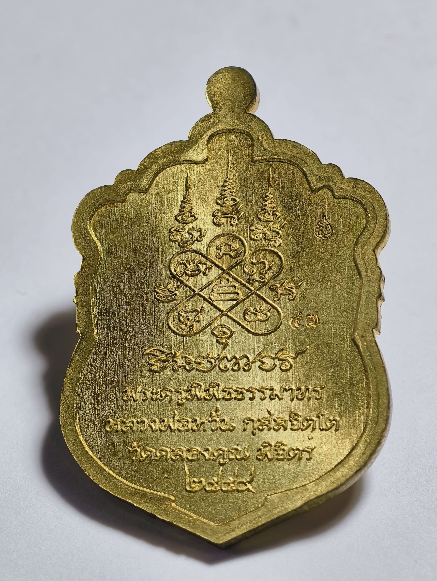 หลวงพ่อหวั่น วัดคลองคูณ เสมา ชินบัญชร ปลอกลูกปืน ลงยา  (AC3278)