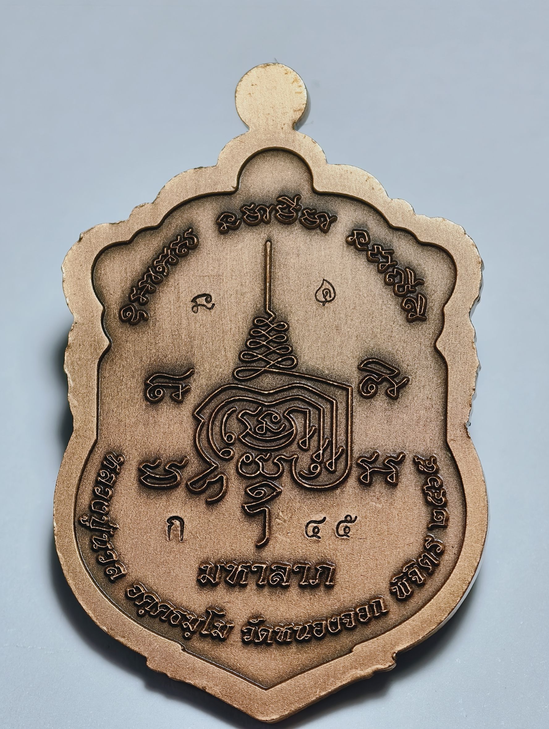 หลวงปู่นวล วัดหนองจอก เสมารุ่นแรก เสือคาบแก้ว 8 รอบ หลัง ยันต์พลัง