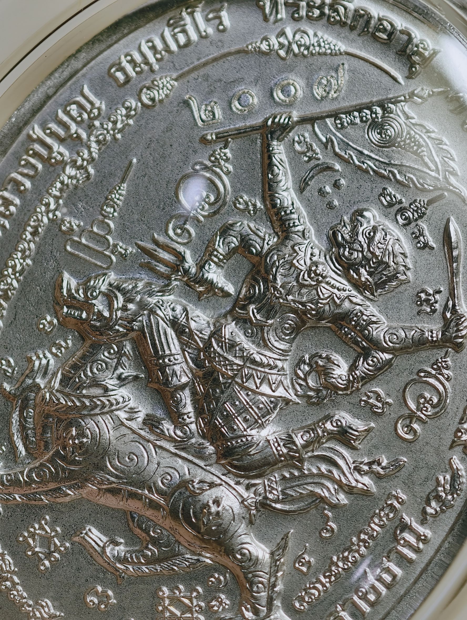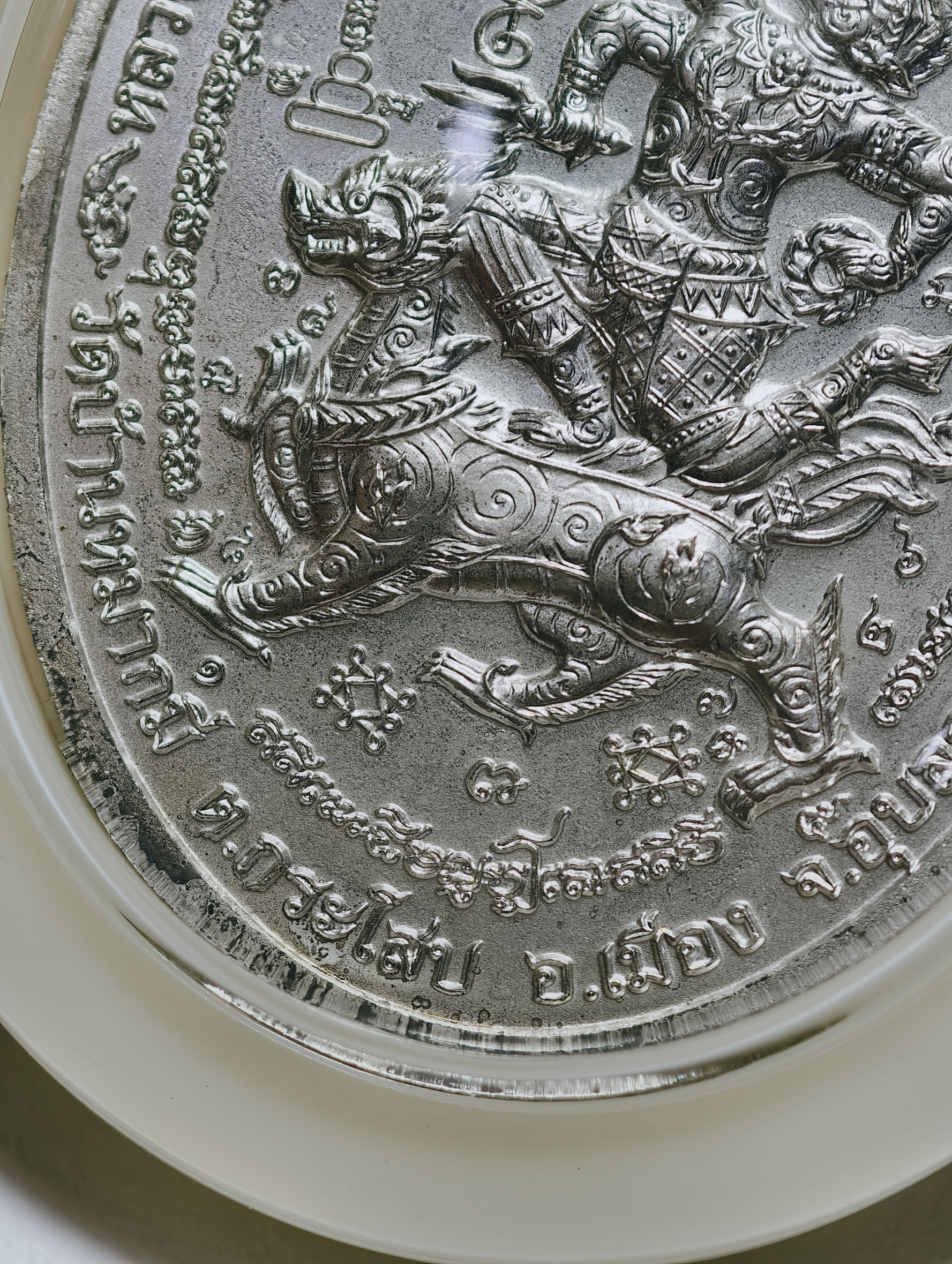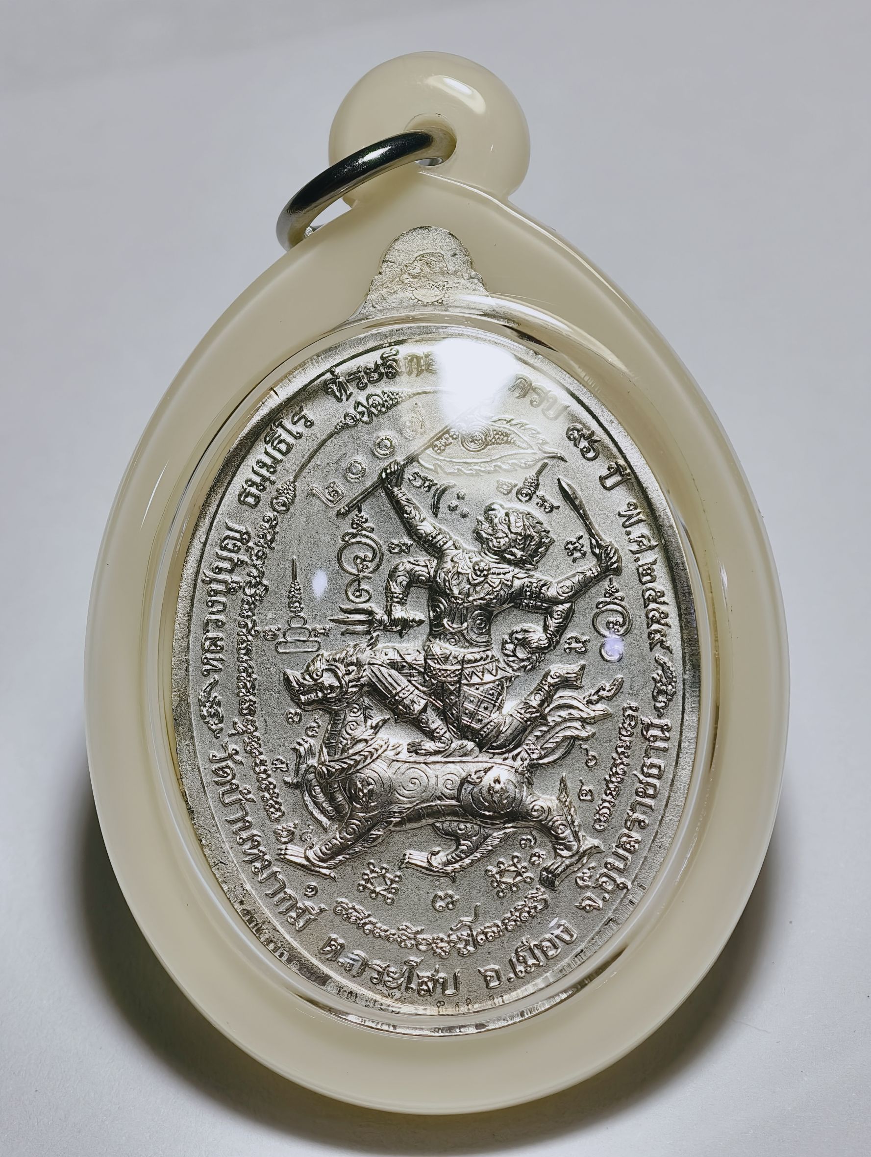 เหรียญมหาปราบ มหายันต์หนุมานออกศึก เลี่ยมขอบสีงา AC2339