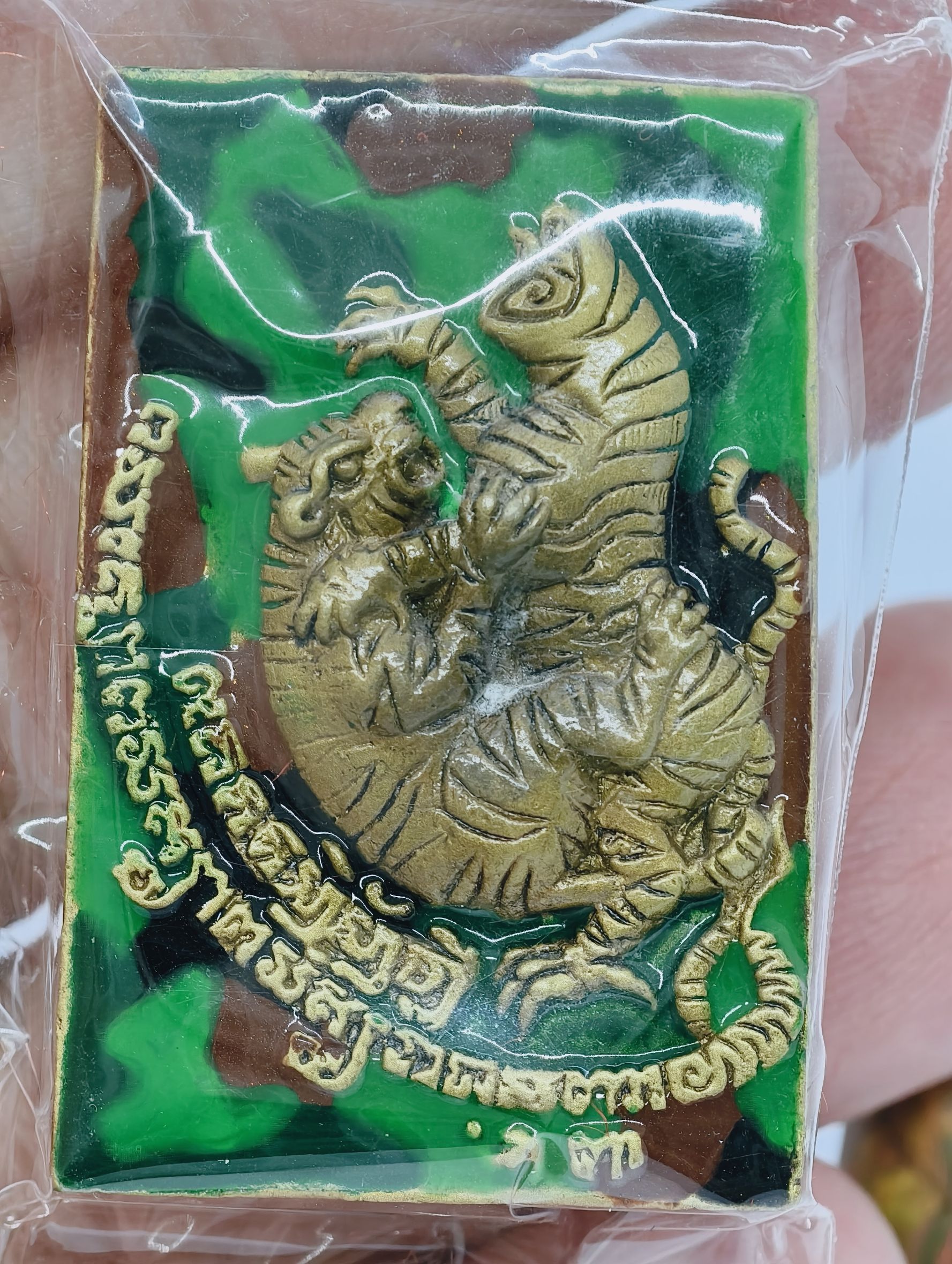 หลวงพ่อตือ วัดบางจาก พระสมเด็จเสือหัวขาด พยัคฆ์หวงถิ่น ลงยาธงชาติ หลัง เขียวพราง KA2731