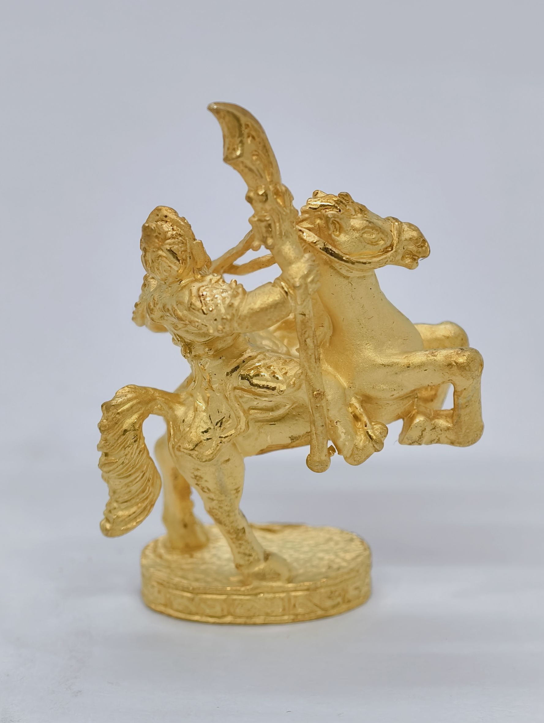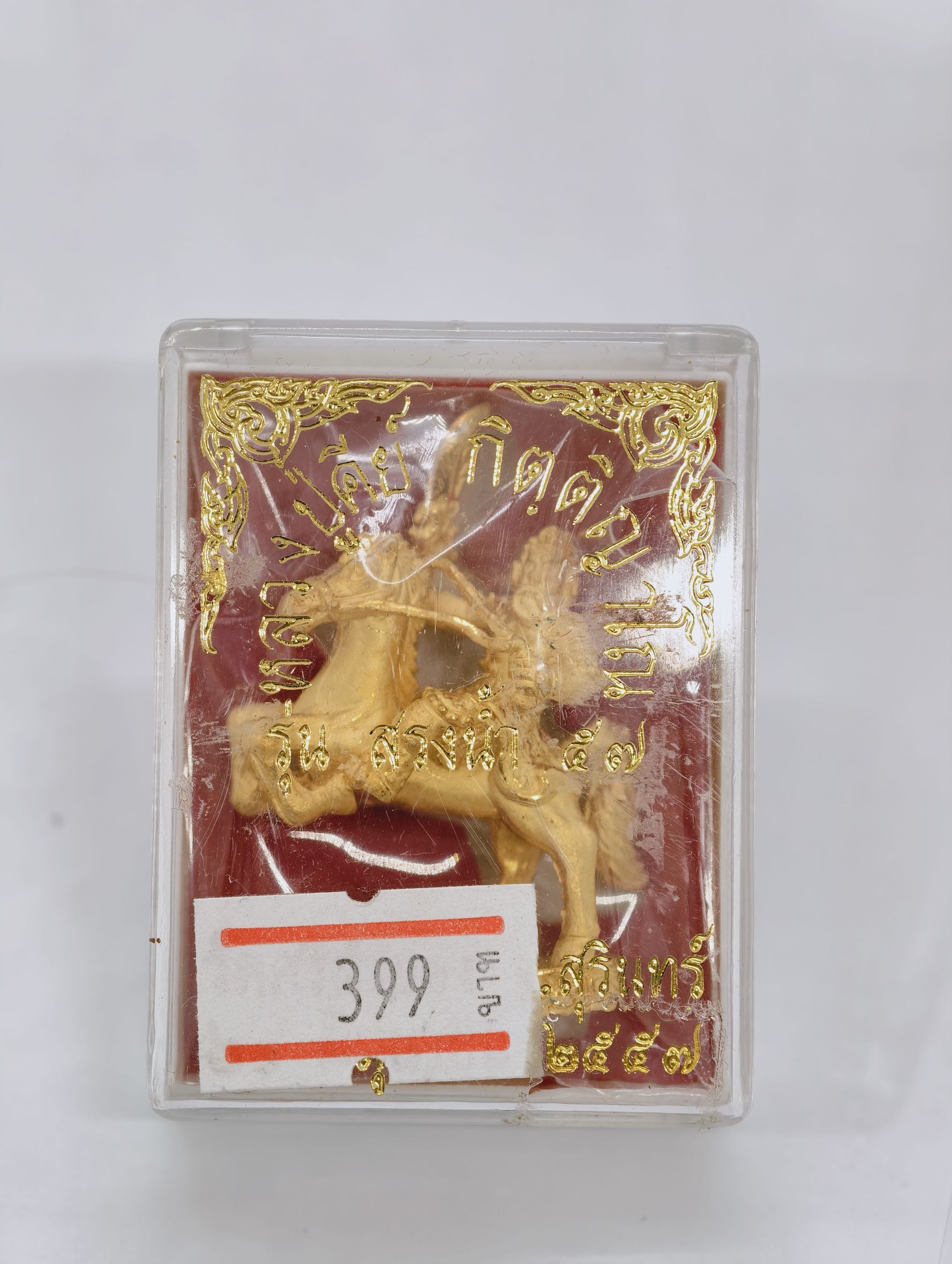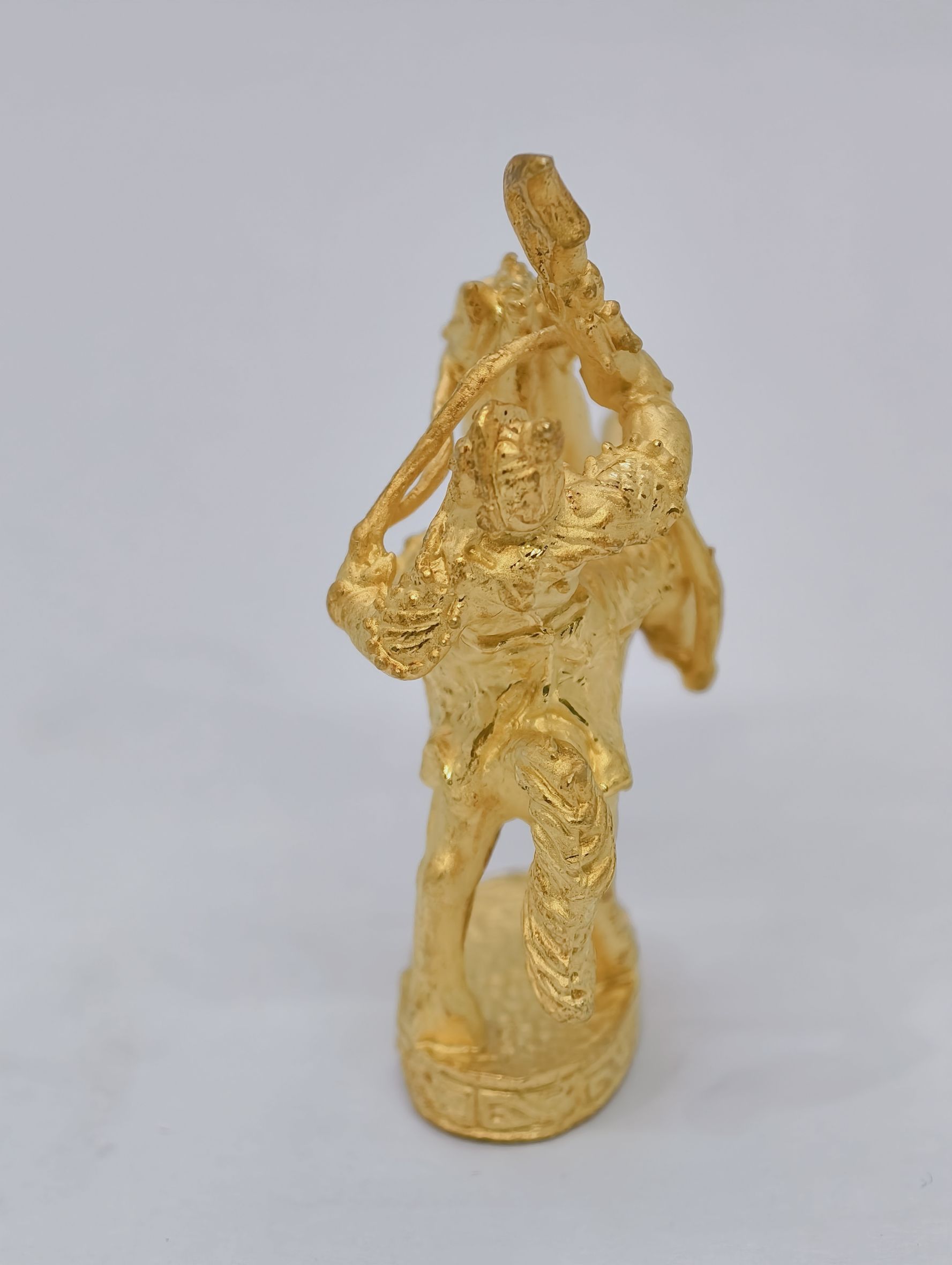หลวงปู่คีย์ วัดศรีลำยอง เทพเจ้ากวนอู ทรงม้าศึกเซ็กเทา รุ่น สรงน้ำ 57 เนื้อโลหะชุบทอง พร้อมคาถาบูชา (KA3224)