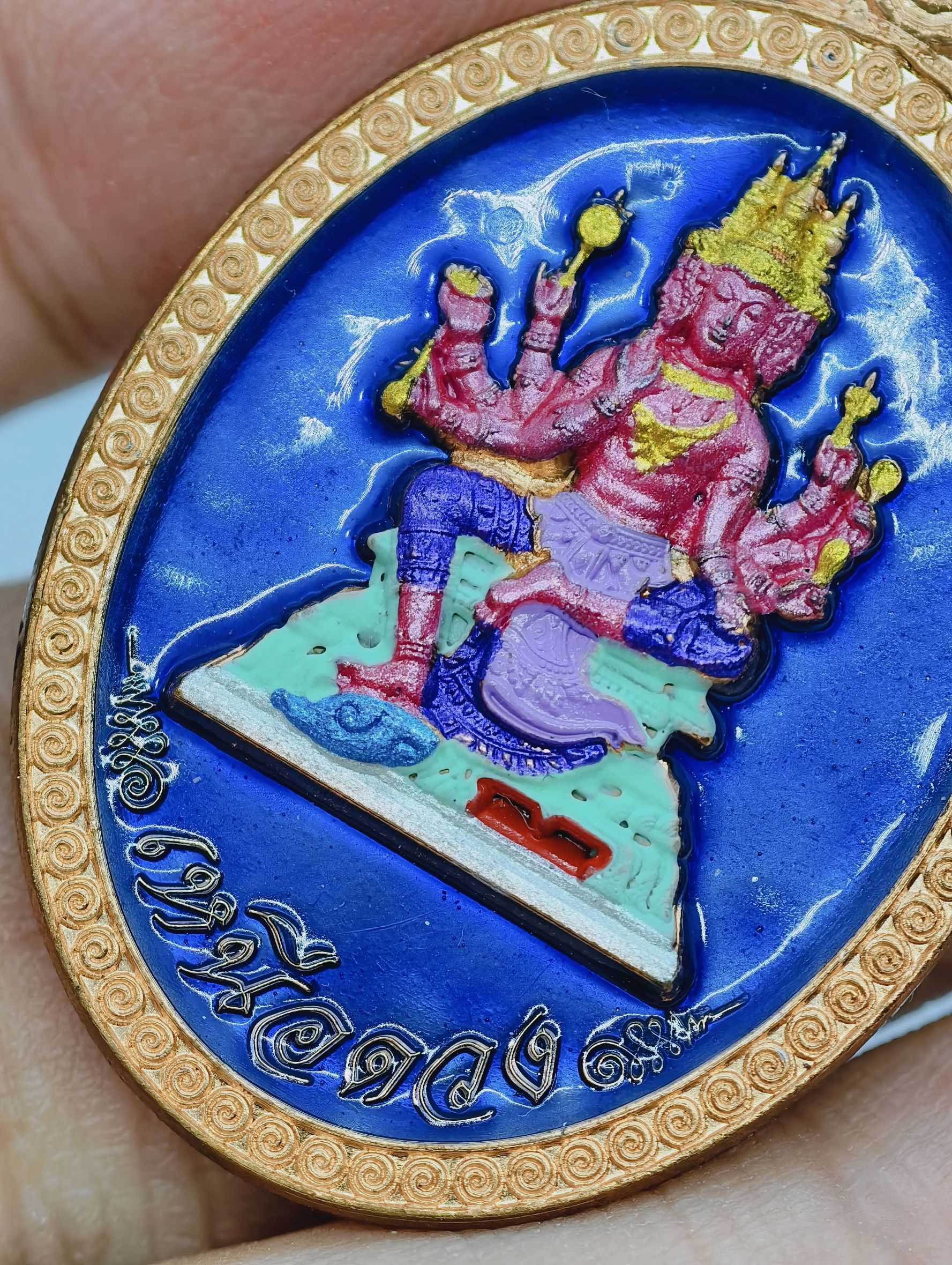 หลวงปู่มหาศิลา วัดพระธาตุหมื่นหิน พระพรหมเหนือดวง ลงยา น้ำเงิน KA3329