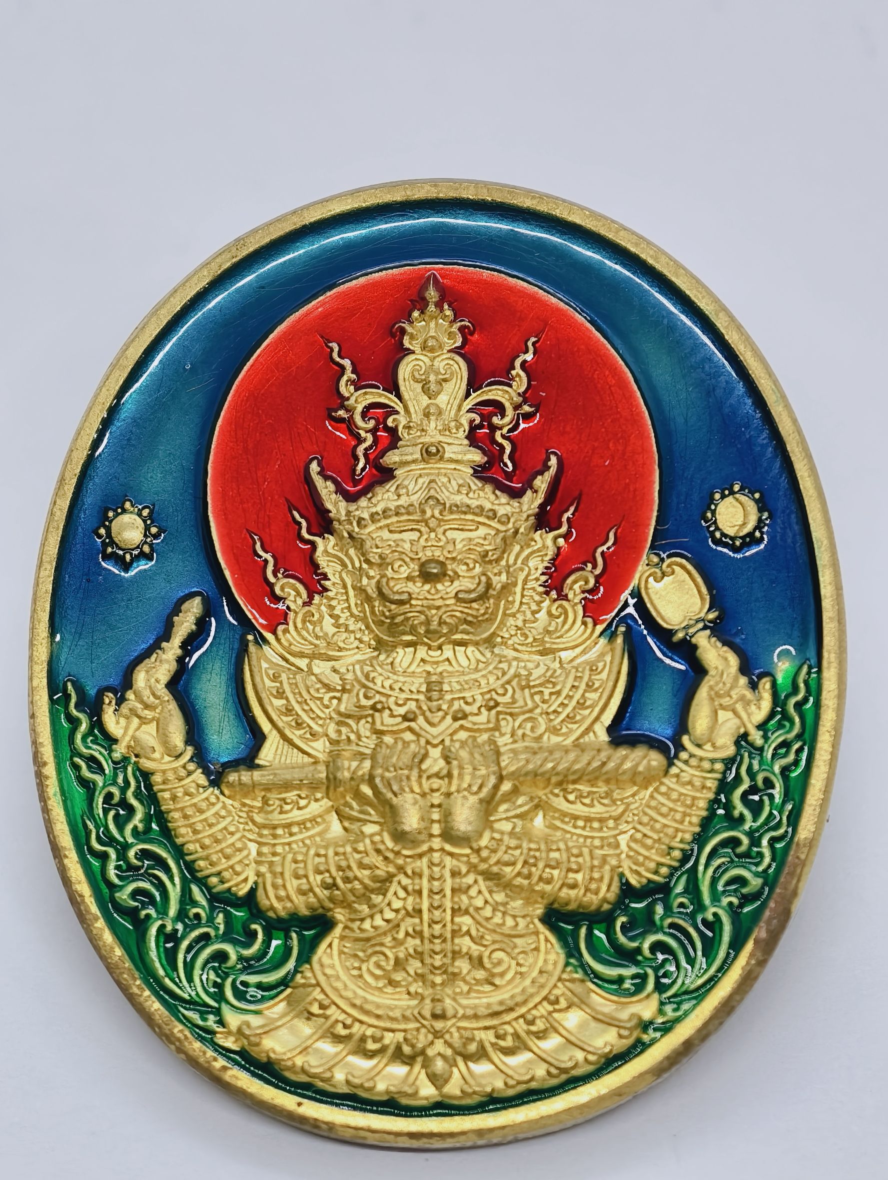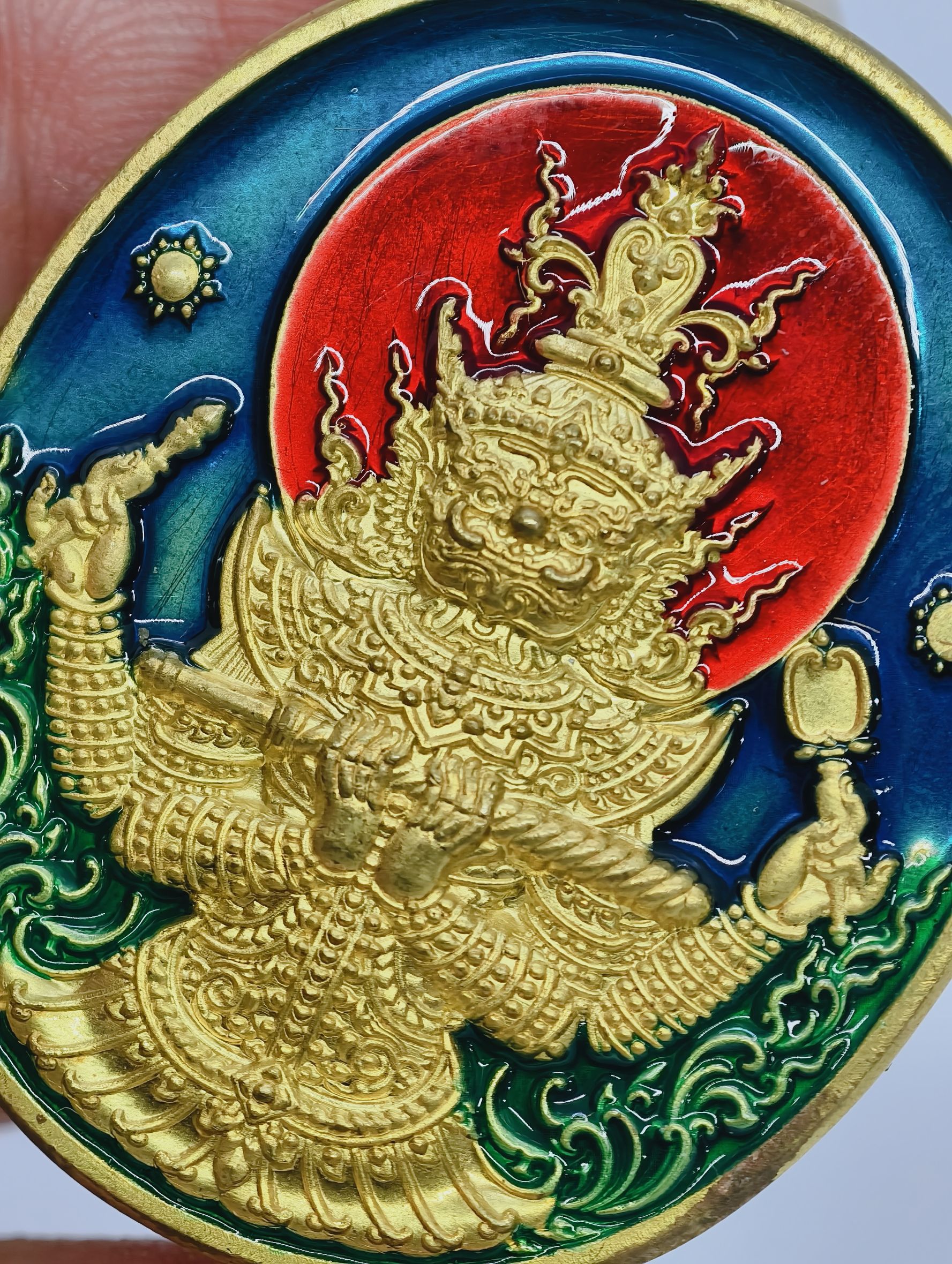 หลวงพ่อพัฒน์ วัดห้วยด้วน ท้าวเวสสุวรรณ รับทรัพย์ ลงยา หลัง พระราหูอมจันทร์ (KA8940)
