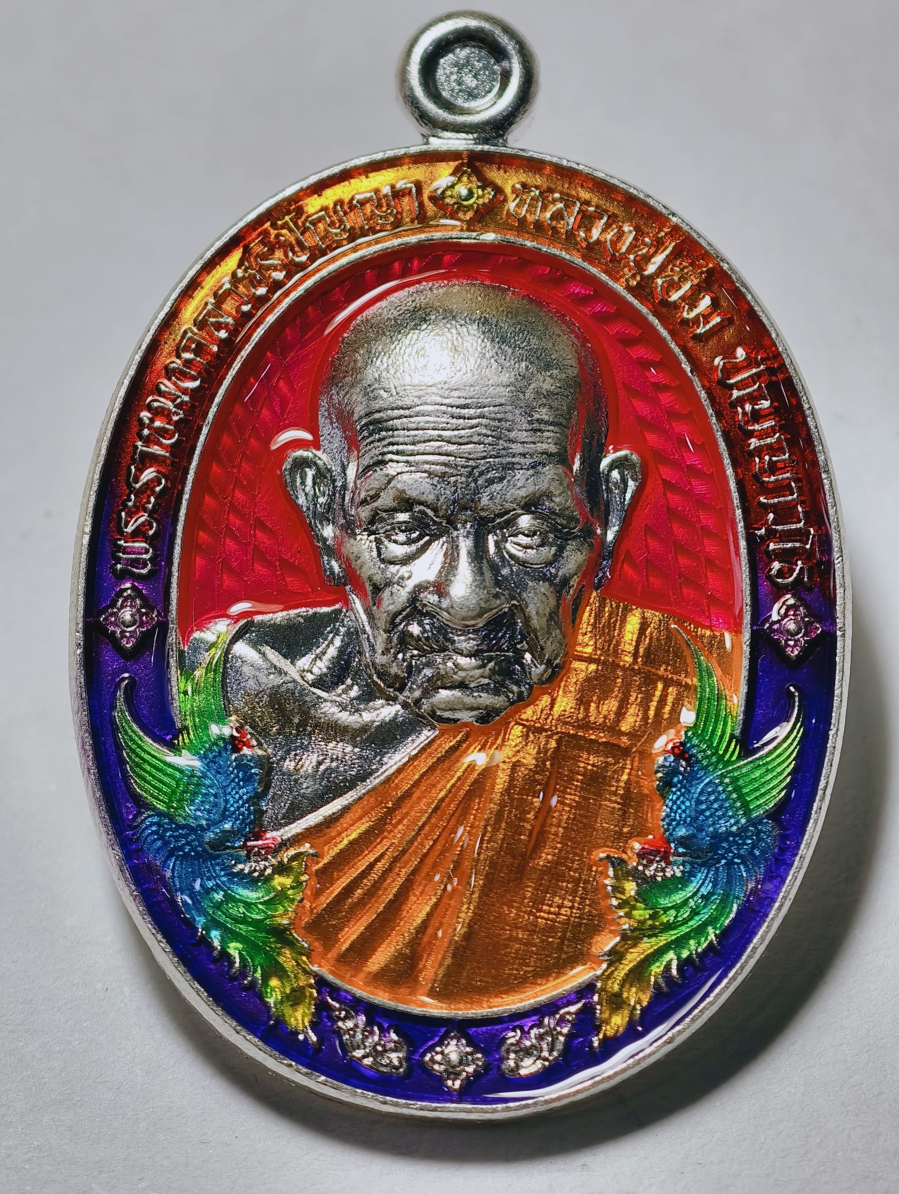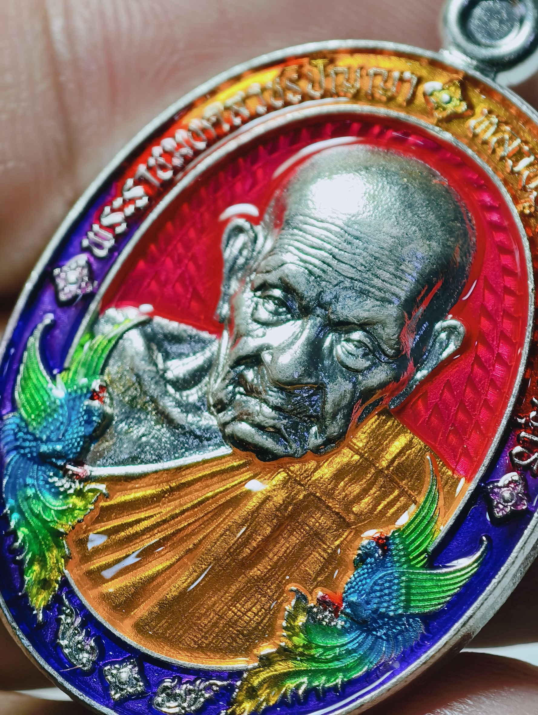 หลวงปู่อิ่ม วัดทุ่งนาใหม่ วาระครบ ๙ รอบ เนื้อกะไหล่เงิน ลงยา ราชาวดี สร้าง 9 เหรียญ AC8741