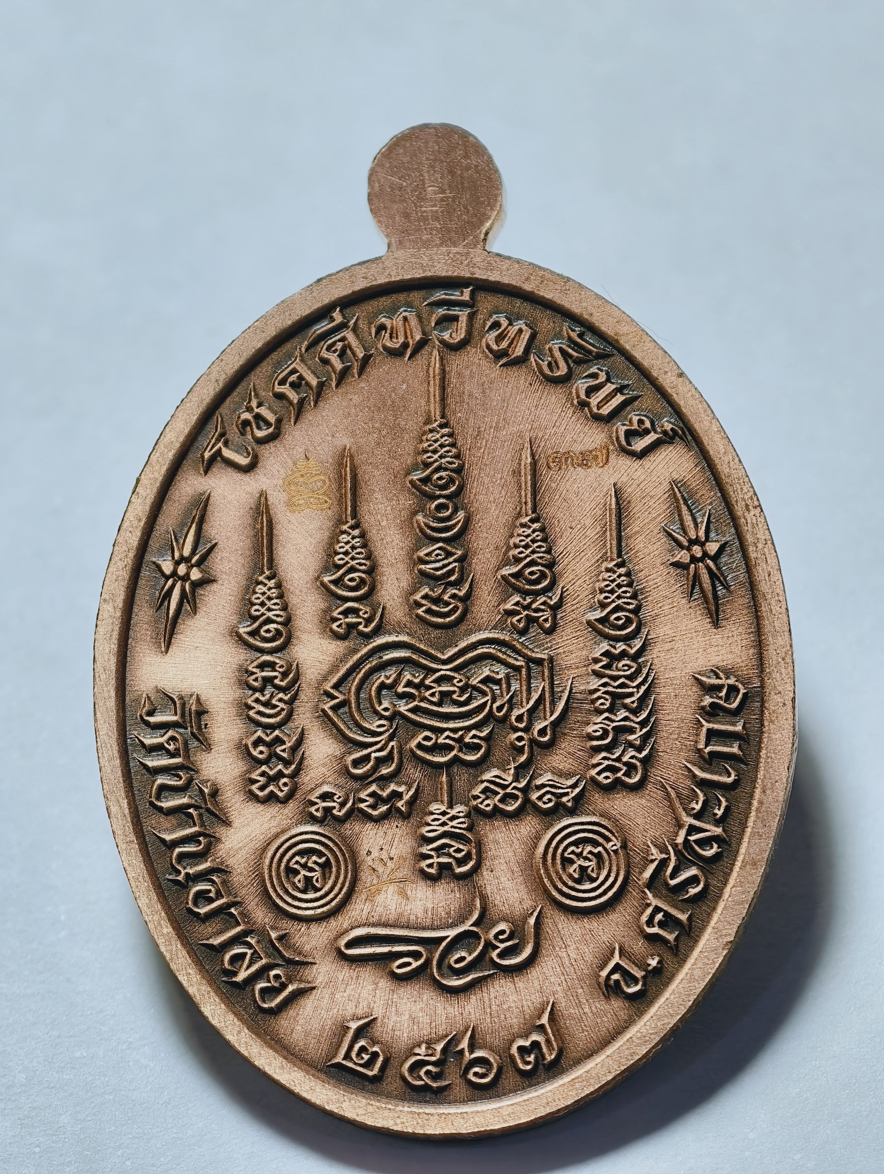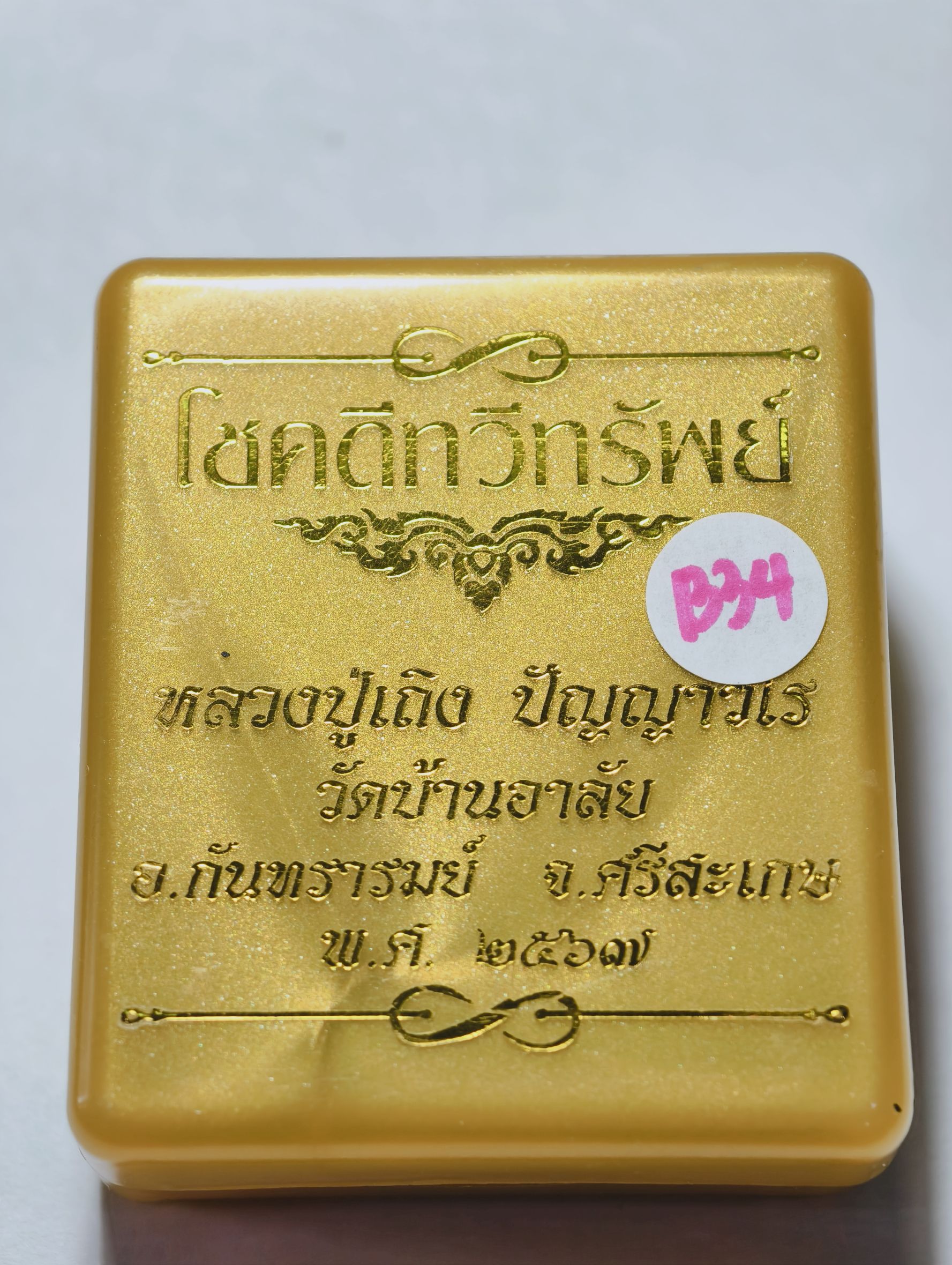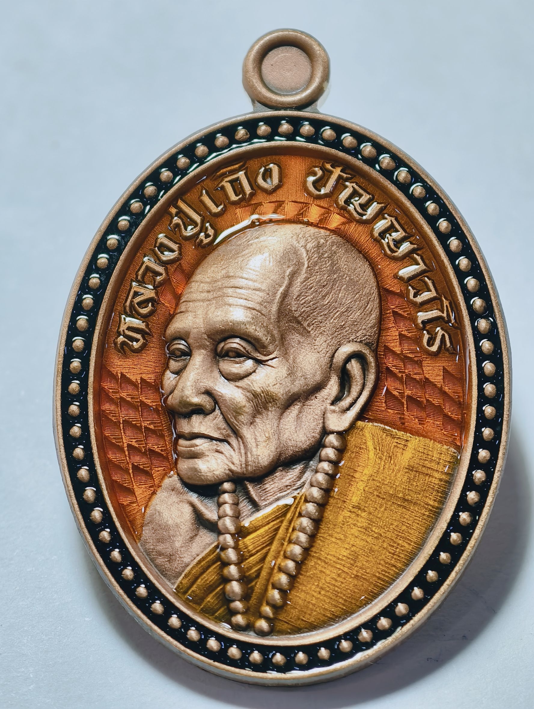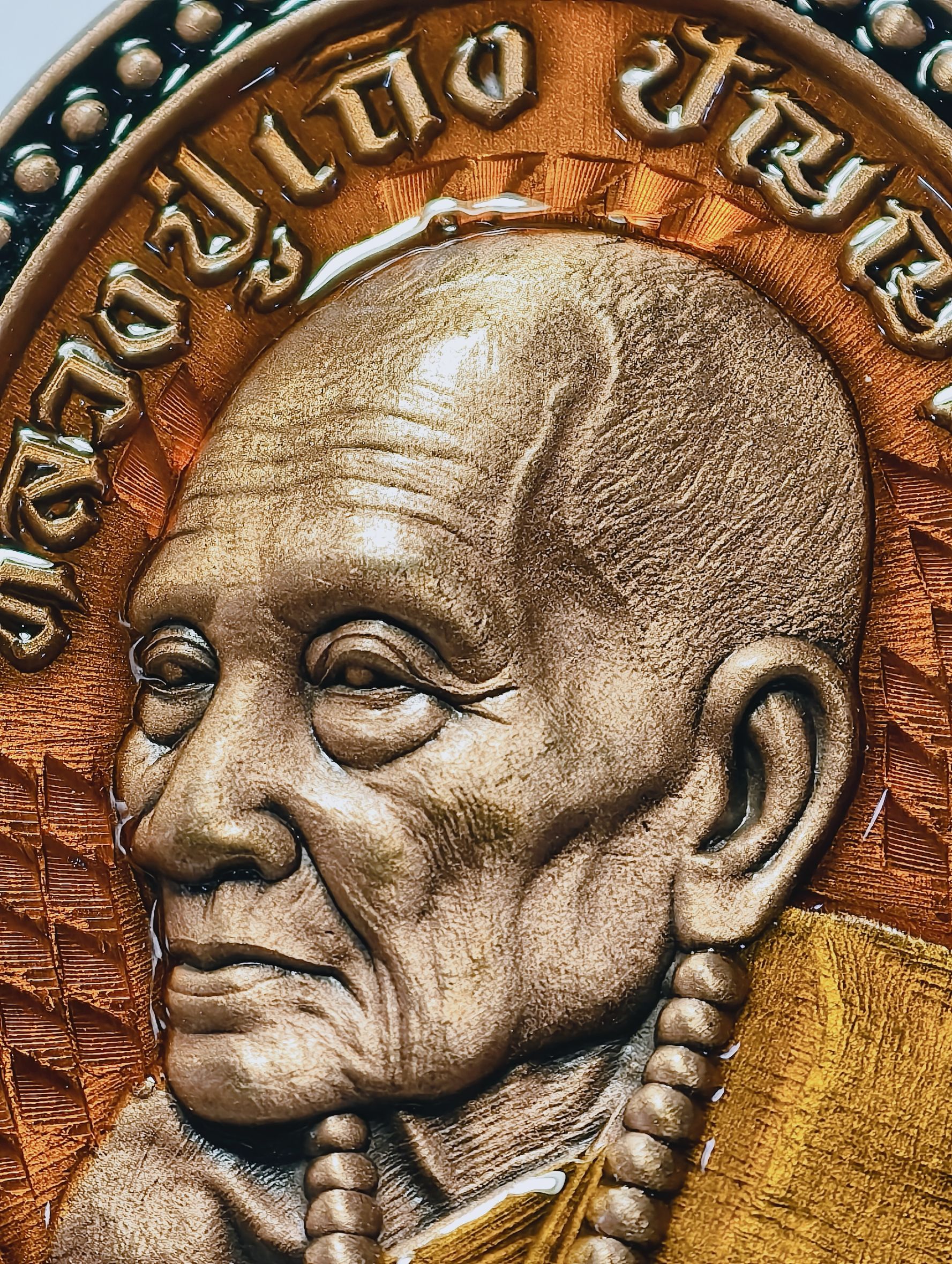 หลวงปู่เถิง วัดบ้านอาลัย เหรียญโชคดีทวีทรัพย์ เนื้อซาติน ลงยา AC4444