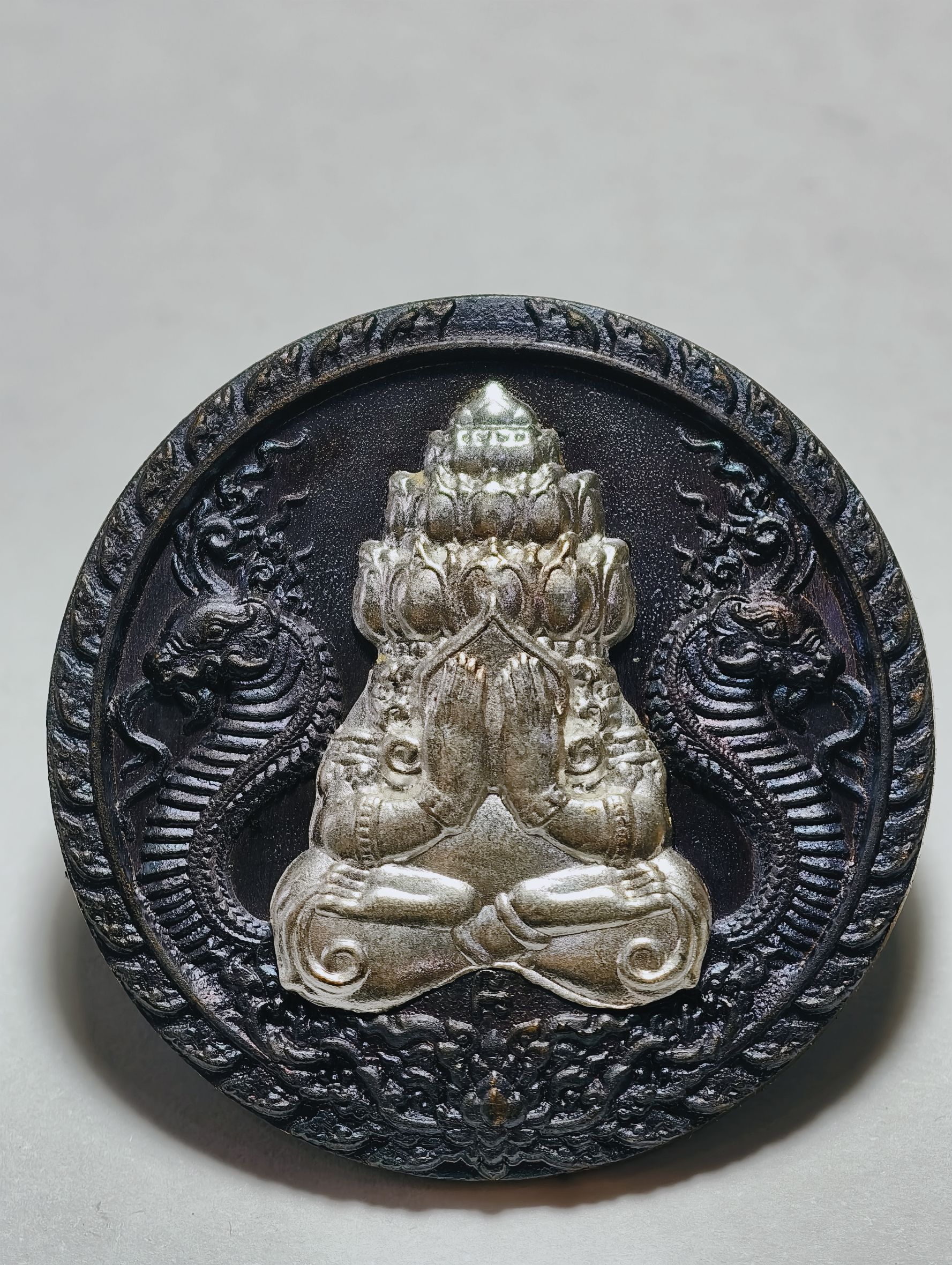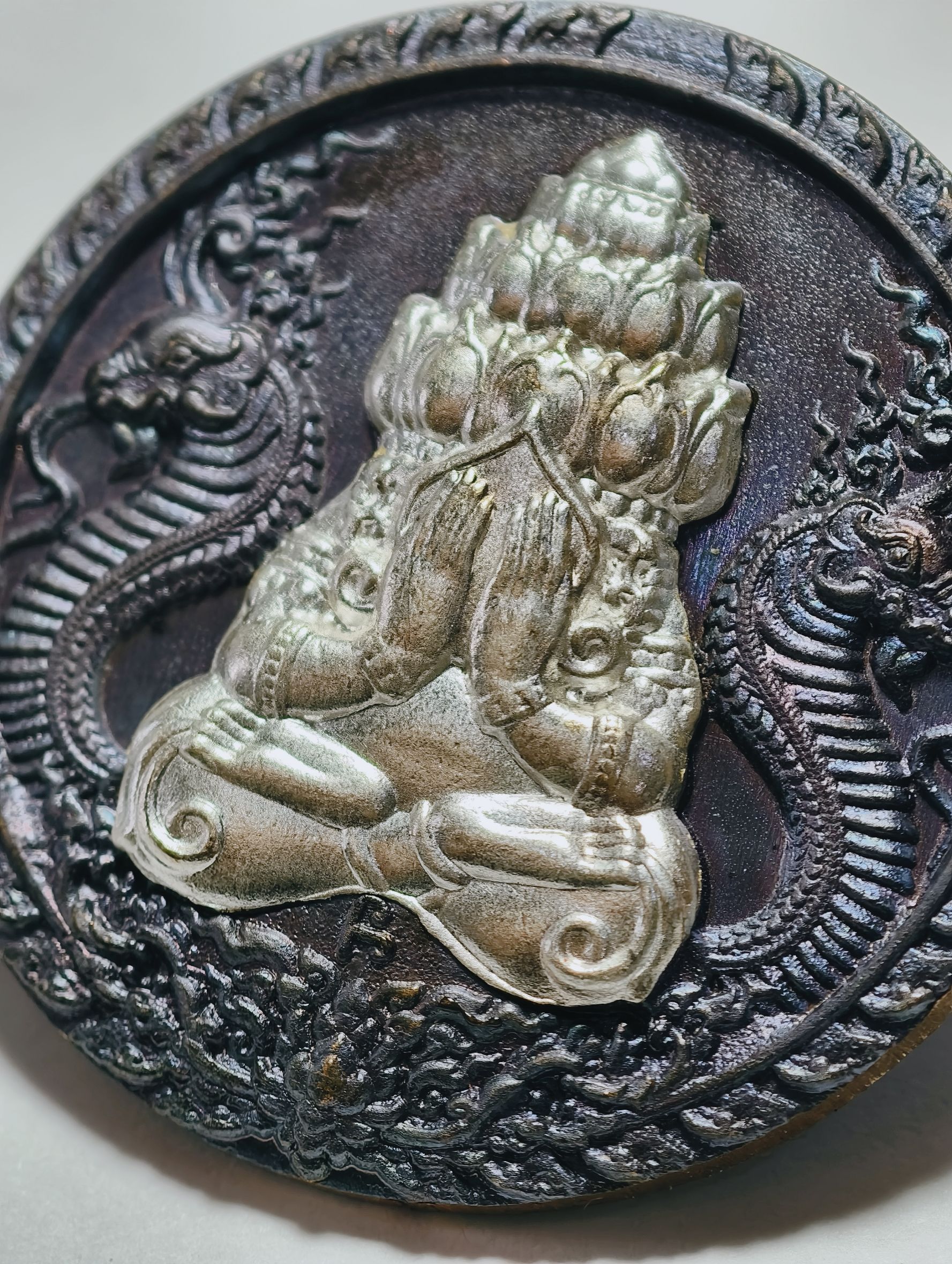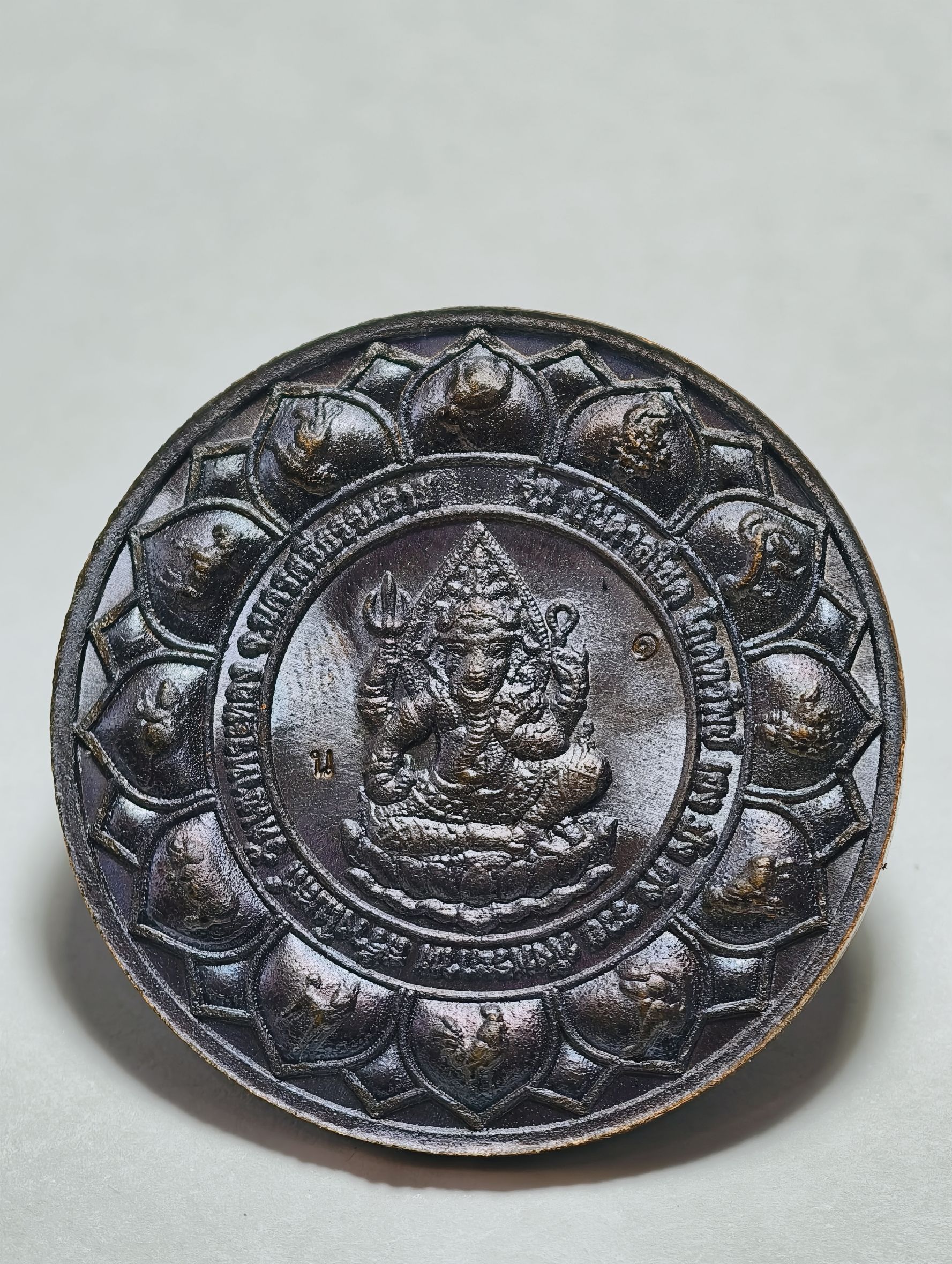 หลวงปู่มหาศิลา วัดพระธาตุหมื่นหิน พระปิดตาพังพระกาฬ หลัง พระพิฆเนศบันดาลโชค นวะโลหะหน้ากากเงิน เลข 1 KA4871