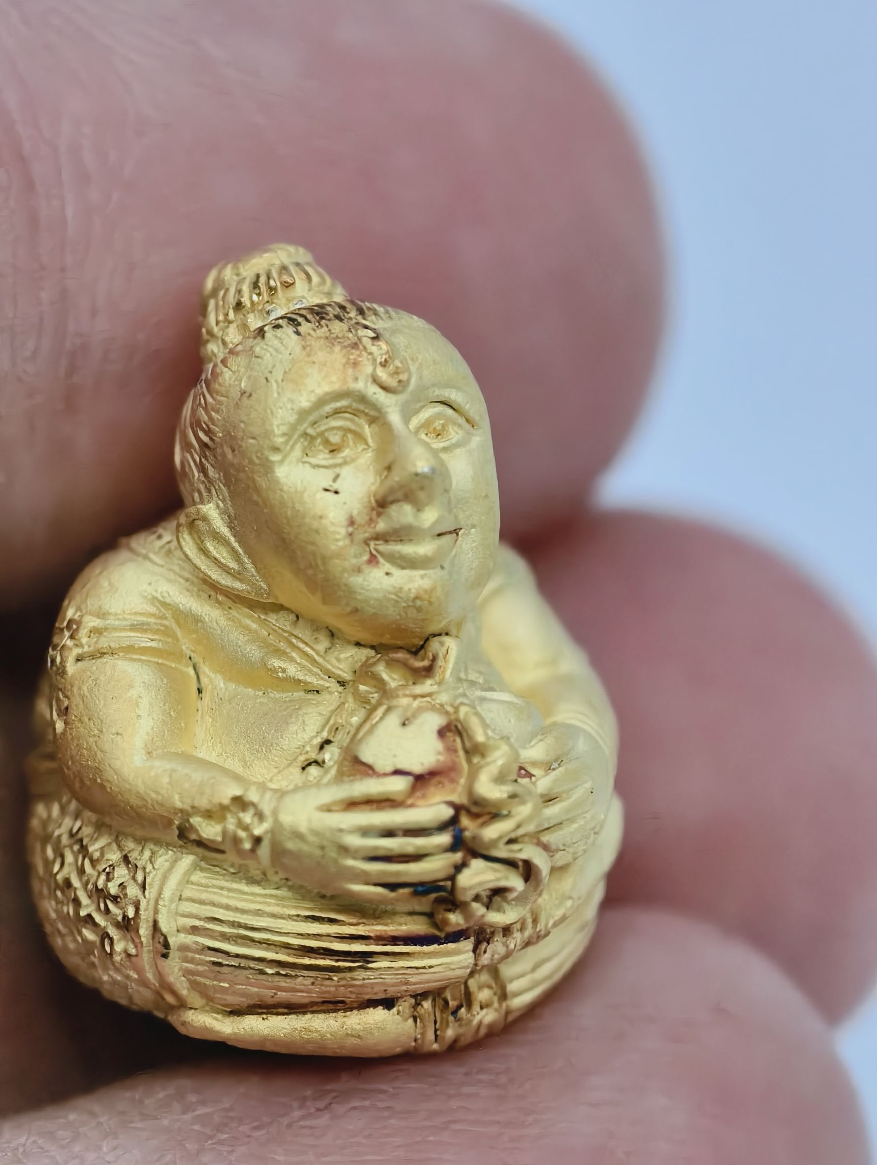 หลวงพ่อลำใย กุมารทองเทวฤทธิ์ (ลูกอมกุมารทอง) กาไหล่ทอง พ่นทราย ฝังตะกรุดคู่ KA3244