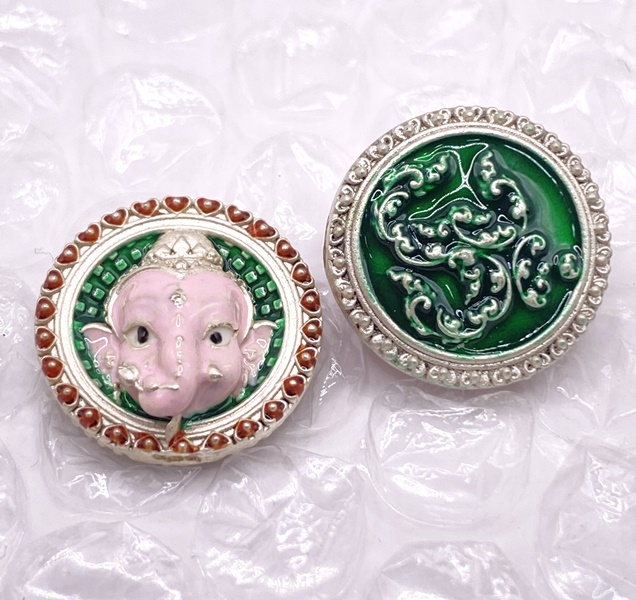 เหรียญโภคทรัพย์คเณชา เนื้อบรอนซ์ ซาติน ลงยาเขียว KM321