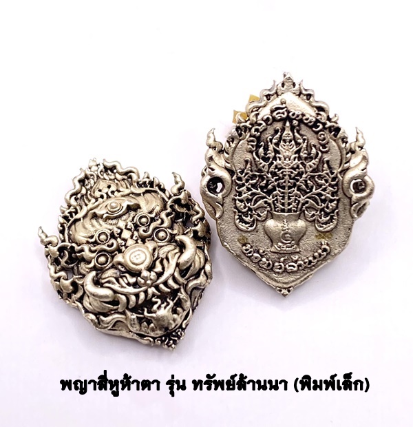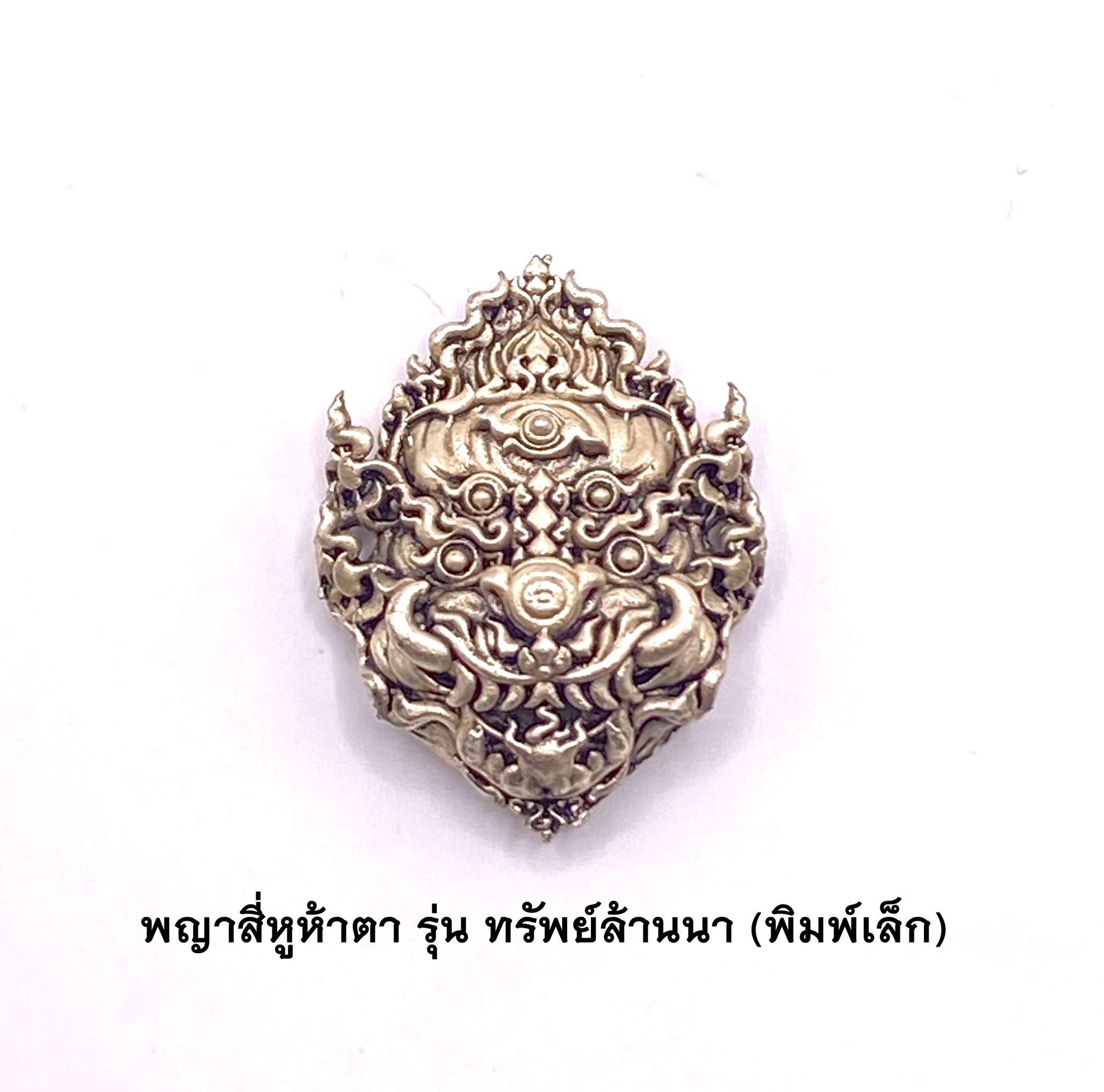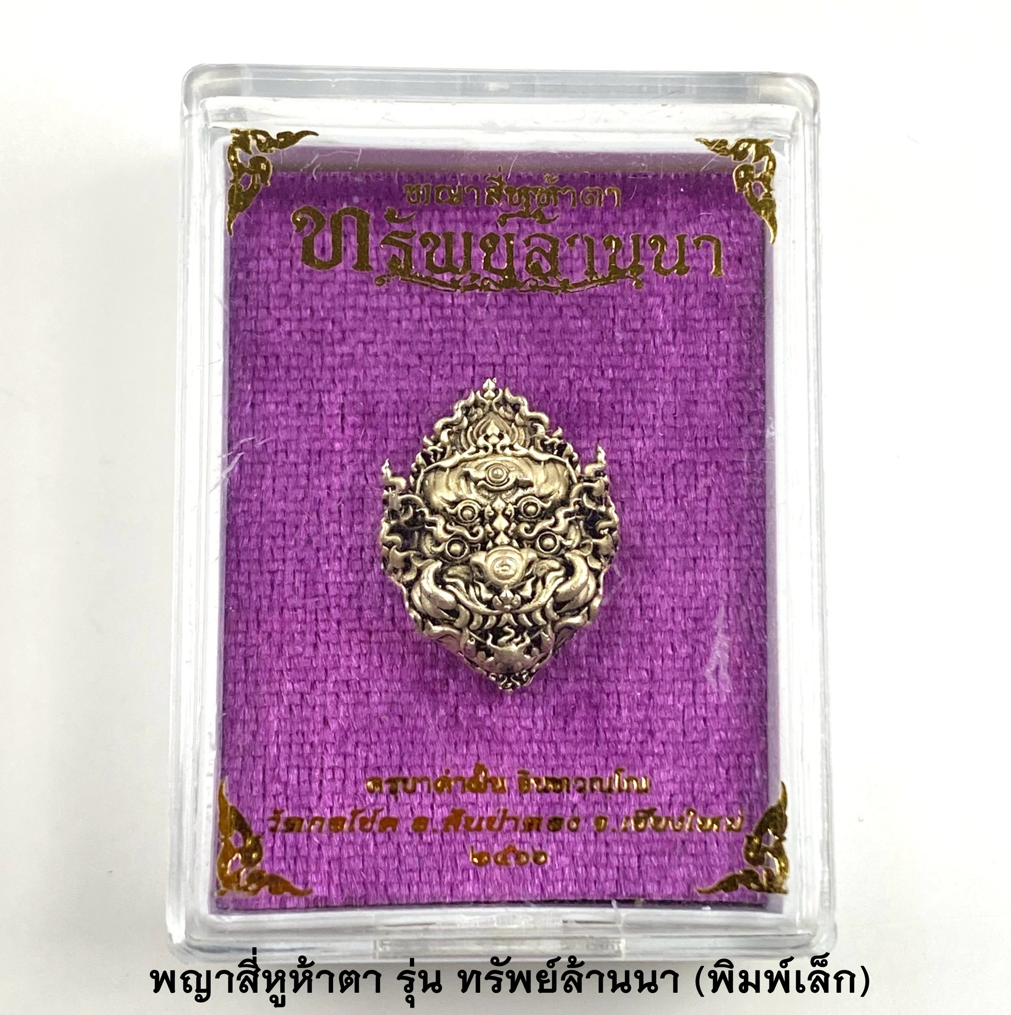 ครูบาคำฝั้น วัดกอโชค หน้ากากสี่หูห้าตา พิมพ์เล็ก เนื้อซาตินเงิน 2566 KM058