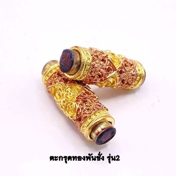 ครูบาคำฝั้น วัดกอโชค ตะกรุดทองพันชั่ง รุ่น 2 เนื้อชุบ 2 k พิงค์-ทอง KM069