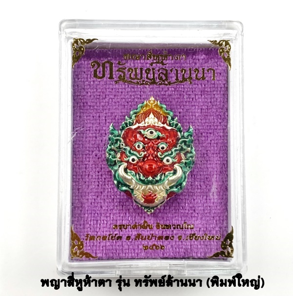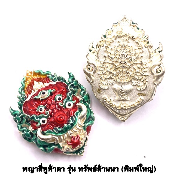 ครูบาคำฝั้น วัดกอโชค หน้ากากสี่หูห้าตา พิมพ์ใหญ่ เนื้อบรอนซ์ชุบเงิน ลงยาแดง KM541